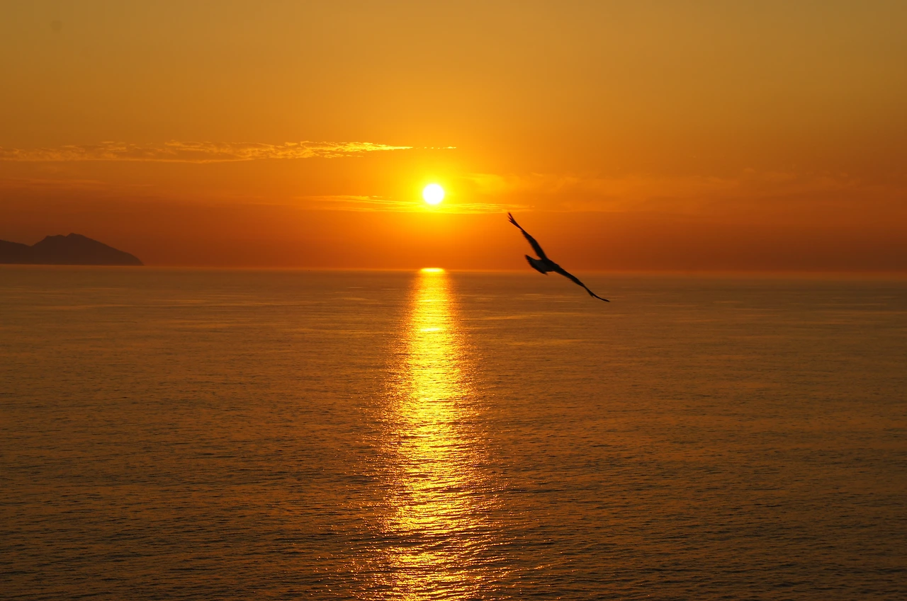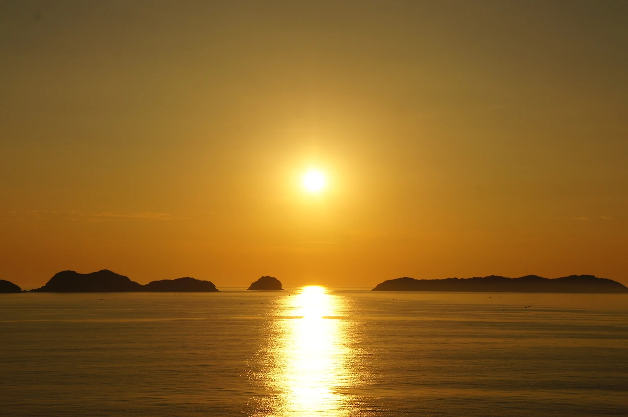 해가 수평선 너머로 더욱 기울자, 붉은 기운이 온 바다와 하늘에 번진다.