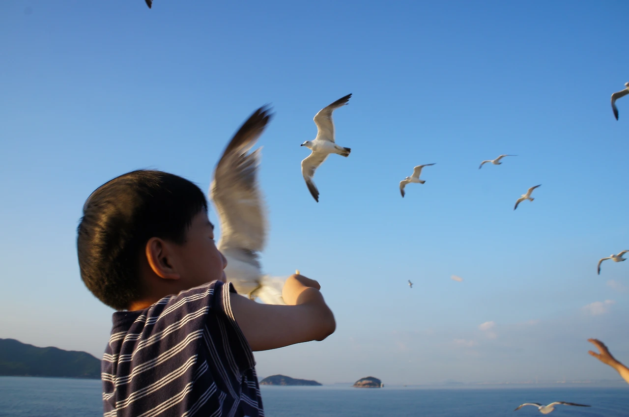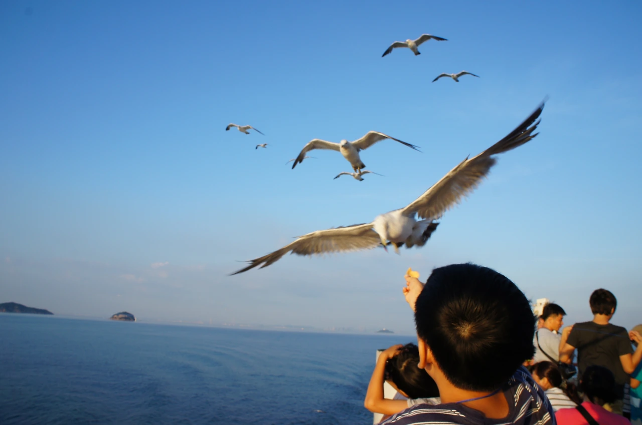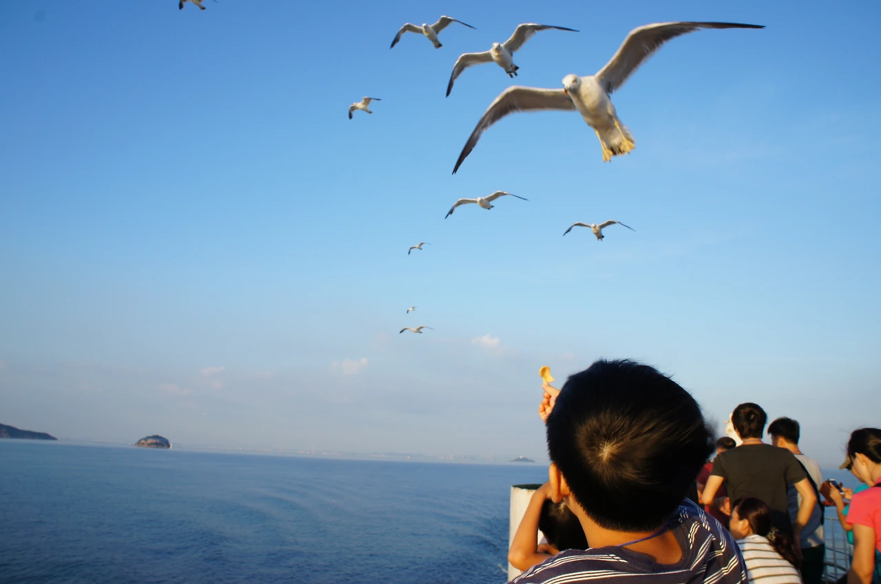갈매기들에게 먹이도 줘본다.