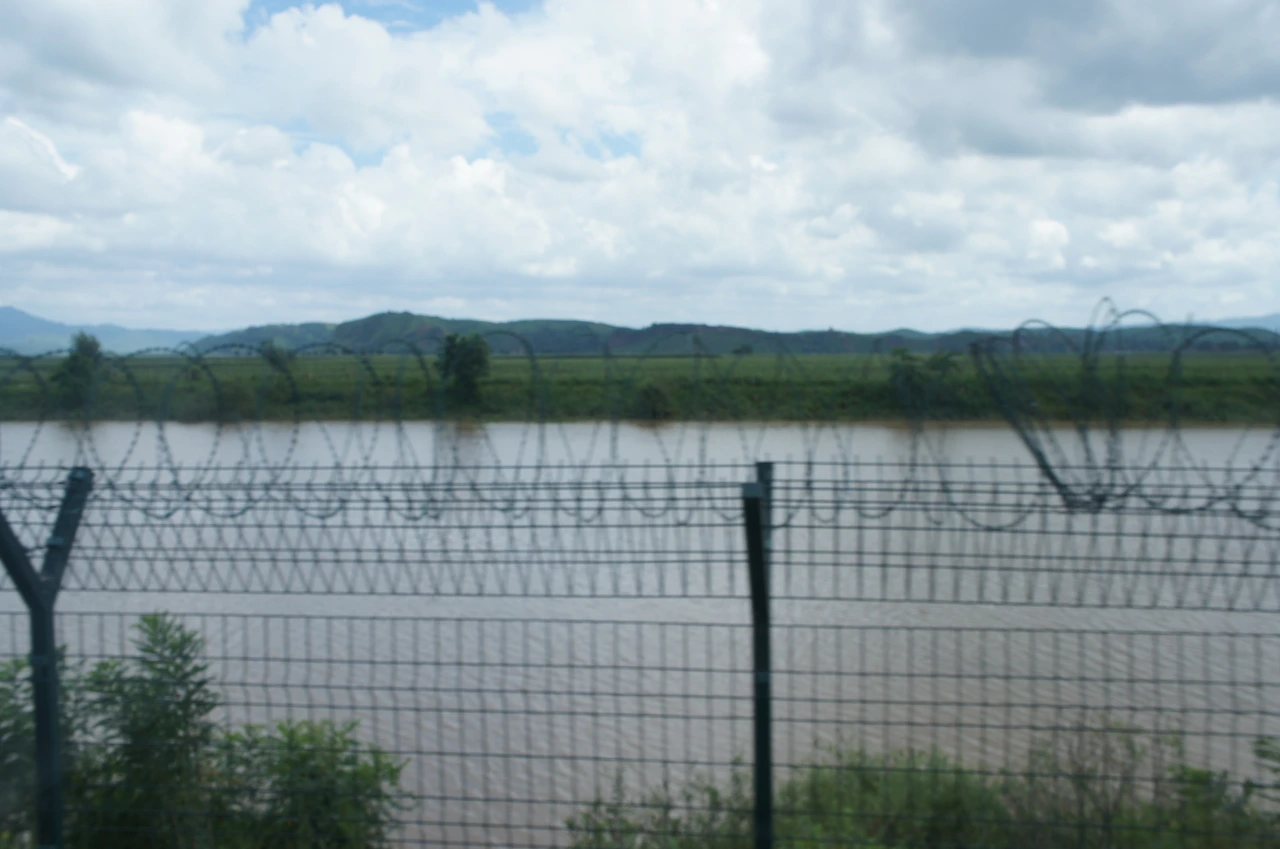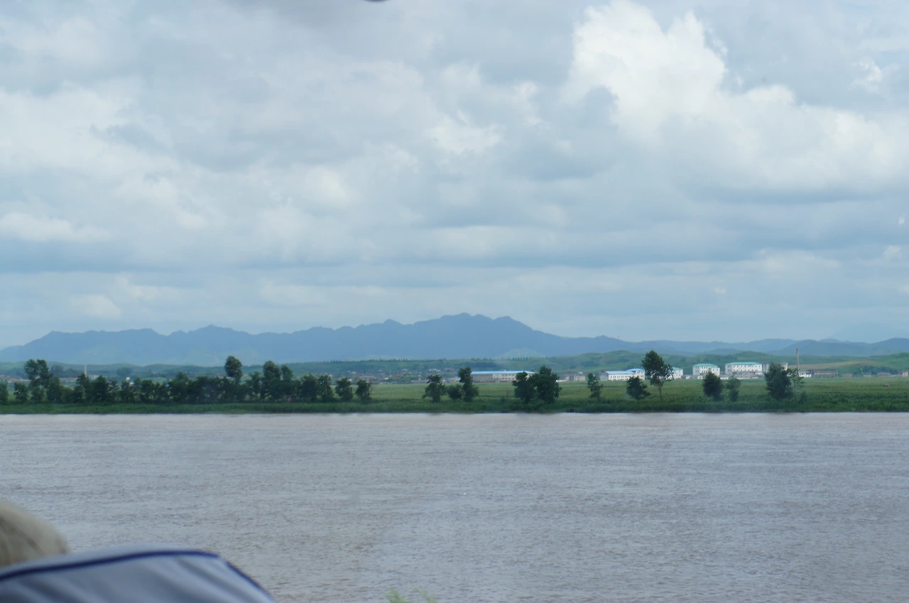 다시 차를 타고 가는데 저 오른쪽에 보이는 것이 북한 땅이란다. 중국과 압록강을 사이에 두고 있는 북한. 손에 잡힐 듯 가까이 있다.