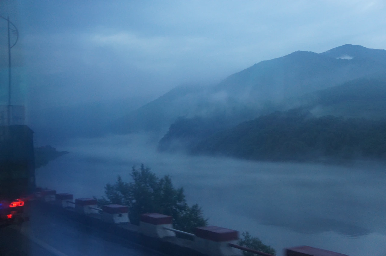 어느새 밤이 되고 저 멀리 보이는 강에서 물안개가 피어오른다.