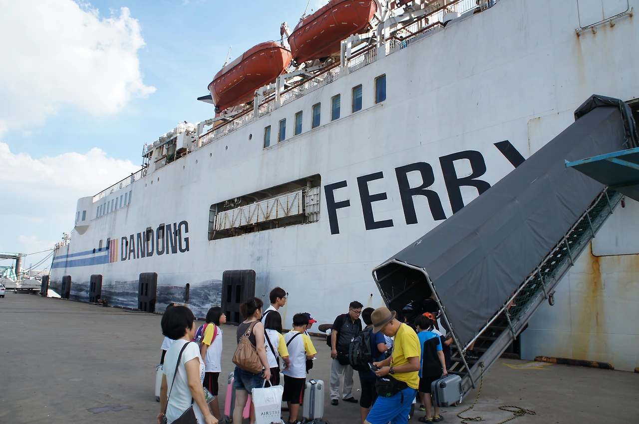 가까이 와서 보니 여객선이 많이 낡아 보였다. 이제 배로 승선~ 단동 페리, 동방명주 호다.