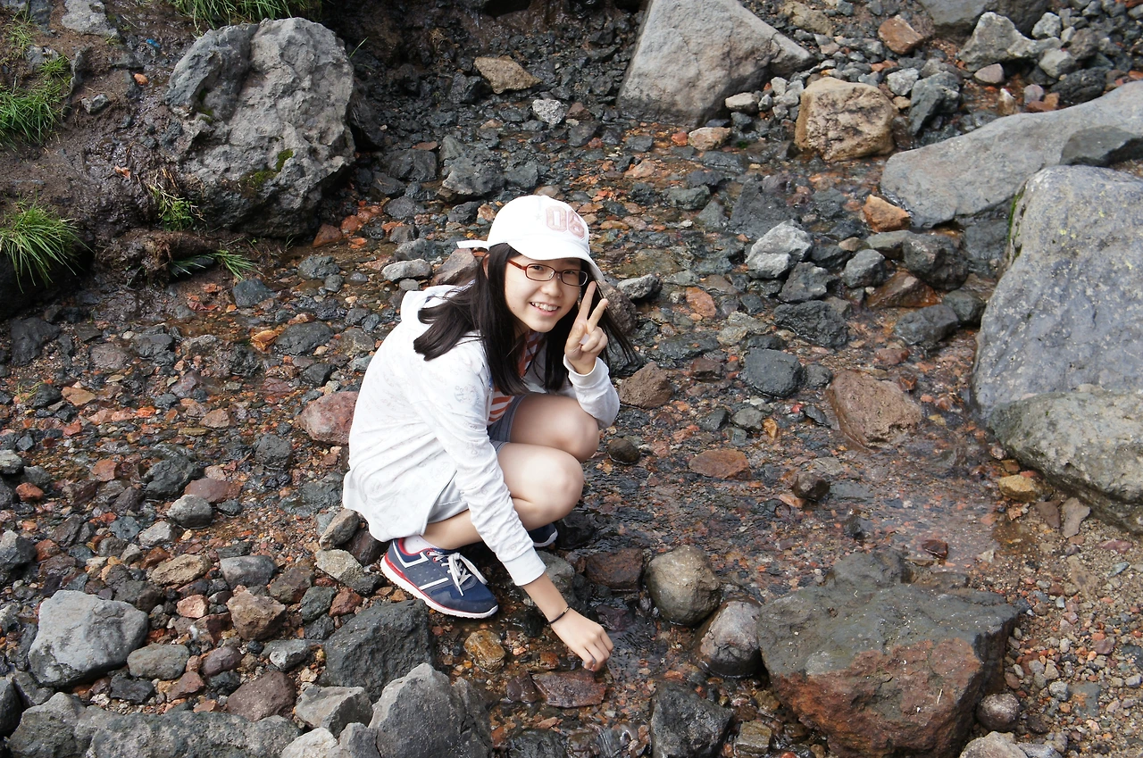 조금 더 내려가니 작은 개울이 나온다. 백두산 천지의 맑디 맑은 물이 작은 시내를 이뤄 아래로 흘러 내려가는 것이다. 미리 준비해 간 작은 물통에 백두산 천지의 물을 담는다.