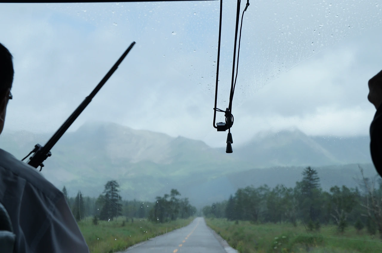 셔틀에 탑승해서 백두산 쪽으로 올라 가는데, 하늘은 여전히 많이 흐리고 비까지 내린다.