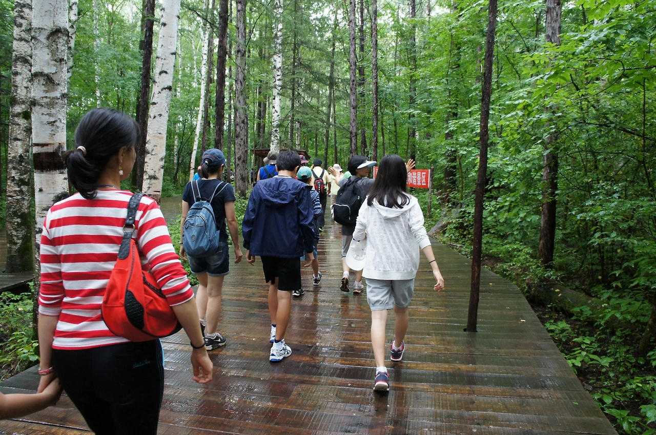 사실 백두산 천지 트래킹을 할까 말까 많이 고민했었다. 한 여름철에 천지 주변에는 이름 모를 들꽃들이 흐드러지게 피어 들꽃 천국이라고 했고, 예약을 통하여 소수의 사람들만이 천지 둘레길을 걸으며 자연을 만끽한다는 정보가 있었지만 아이들이 아직 어리고 혹시 모를 사고가 있을까 봐 그냥 안전한 단체 여행을 택하게 되었는데 못내 아쉬웠다.