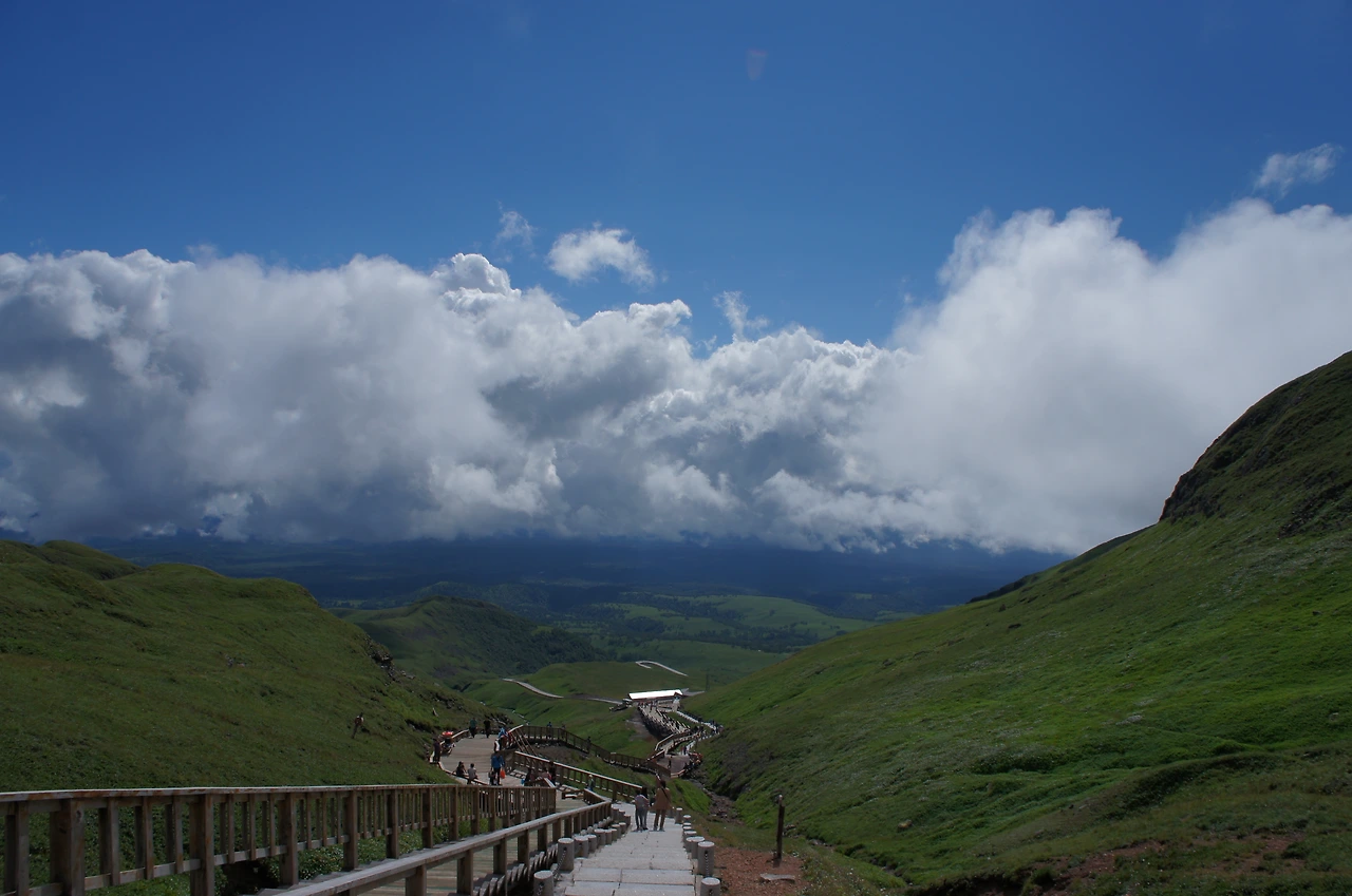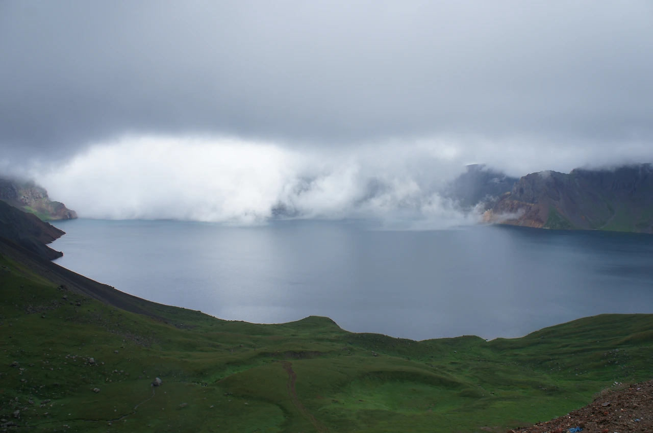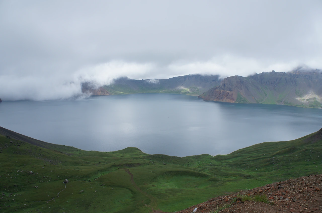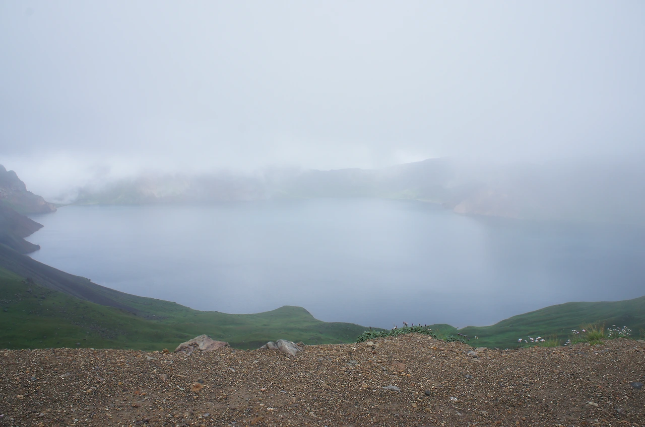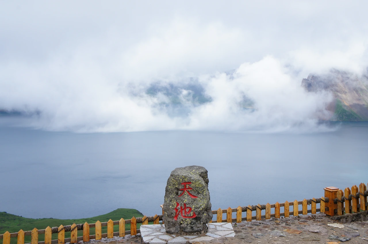 그렇다고 여기까지 왔는데 중도에 포기할 수는 없는 일. 터벅터벅 계단을 계속 올라간다. 지대가 높아선지 숨쉬기가 힘이 든다. 얼마나 올랐을까, 갑자기 주변이 환해지더니 구름이 걷히기 시작한다. 어라~ 좀 더 올라가니 저 위에 서있는 사람들의 환호성과 휘파람 소리가 들리기 시작한다. 천지가 보이나 보다!