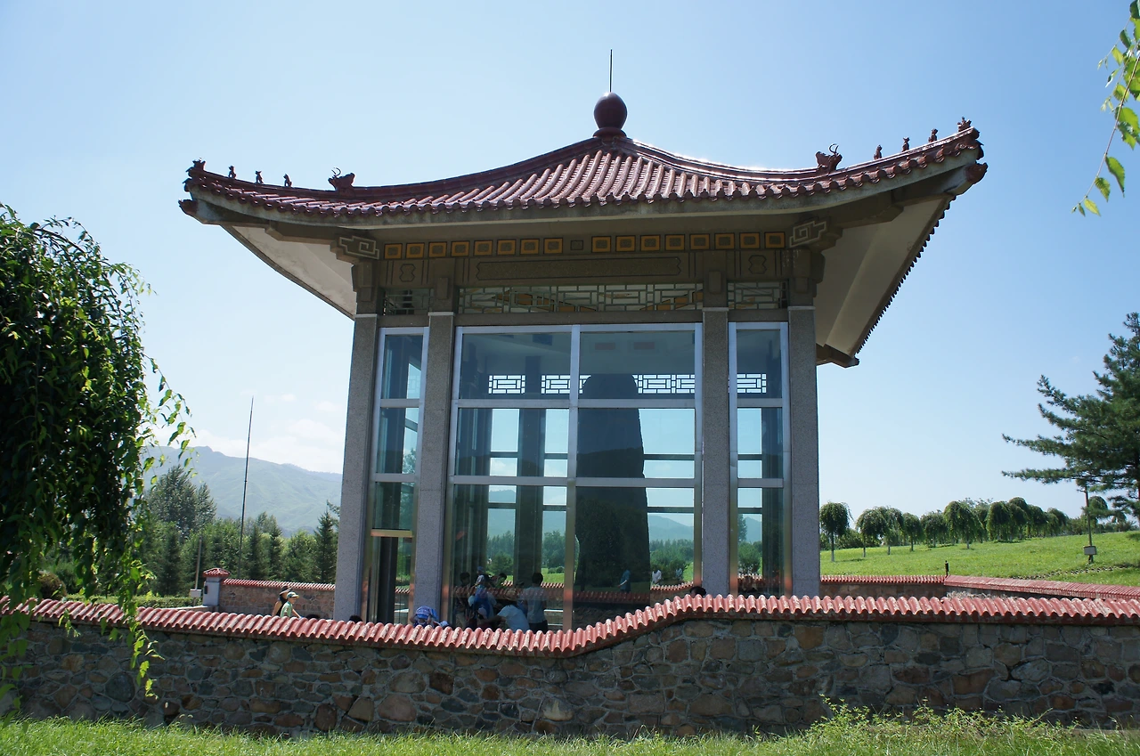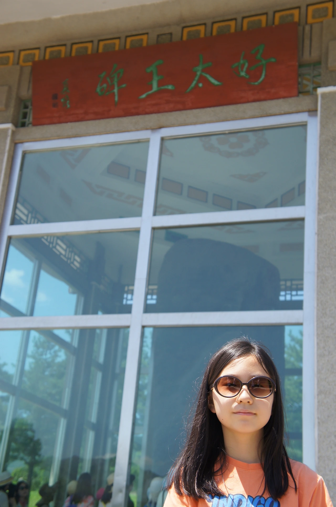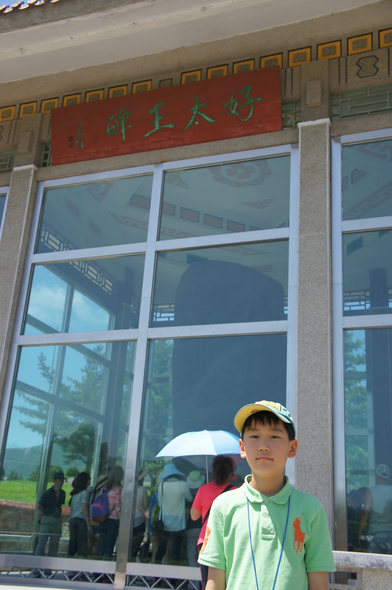 쨍쨍 내리쬐는 따가운 햇살 아래 조금 더 걸어가면 들판 한 가운데 서있는 건물이 하나 눈에 들어오는데, 자세히 보면 그 안에 커다란 비석이 서 있다. 저것이 바로 역사책에서나 볼 수 있었던 광개토대왕릉비인 것이다.