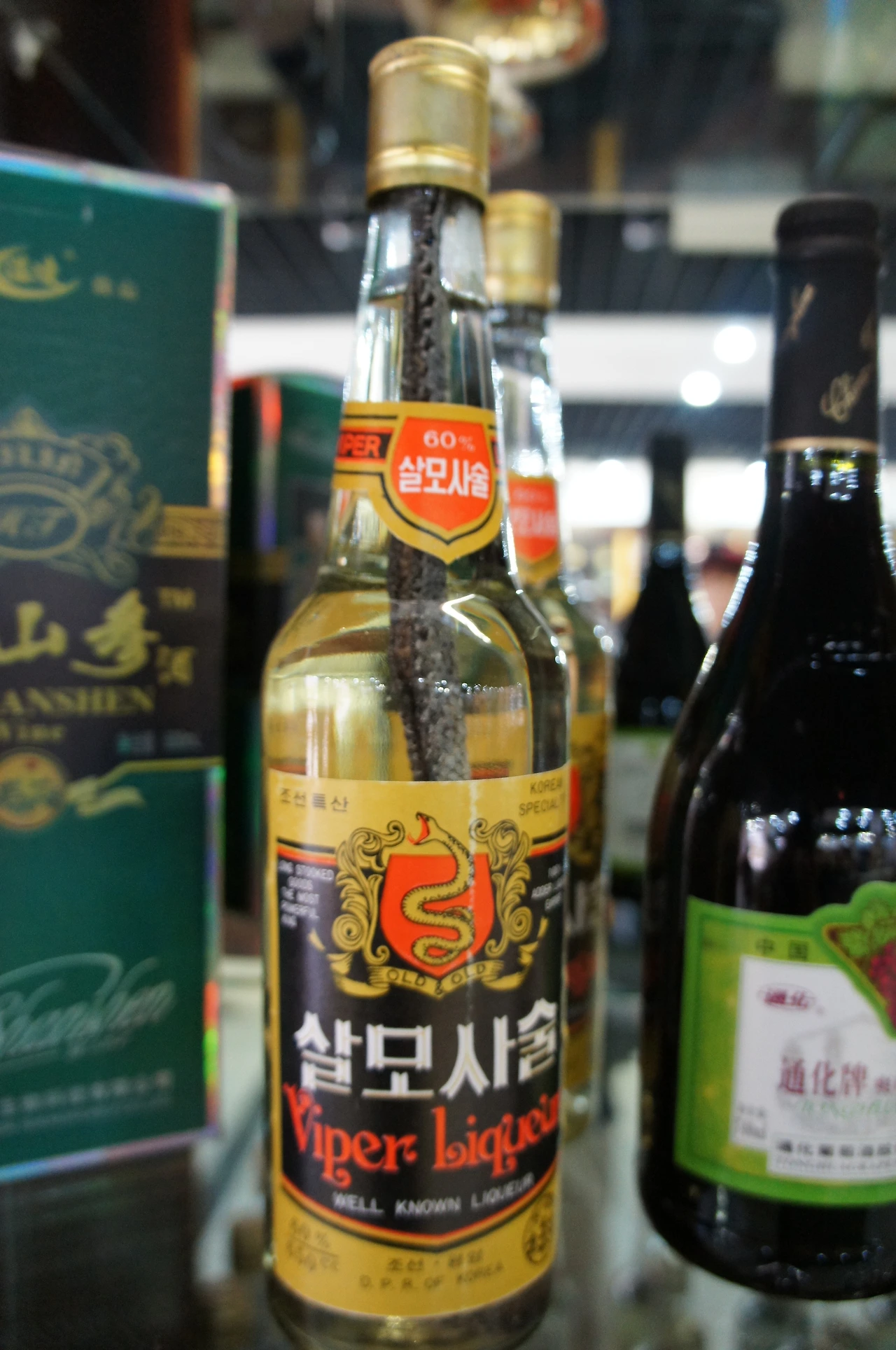 식당 옆에 자그만 기념품 가게가 달려 있는데, 북한술도 진열되어 있었다. 특히 눈길을 사로잡은 건... 살모사 술이다. 한 병 살까 말까 망설이다 포기했는데 지금 다시 사진을 보니 아쉽다. ㅎ