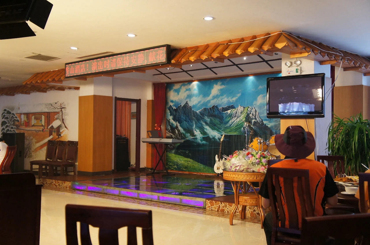 광개토대왕릉비와 장수왕릉 관광을 마치고 점심식사를 위해 북한 음식점으로 향했다. 식당 가운데 벽 쪽에는 북한 무용수들의 공연을 위한 무대가 마련되어있고, 둥근 식탁에 앉아 공연을 보면서 식사를 하게 되어있다. 아쉽게도 북한 무용수들이 공연을 보진 못했지만 북한 사람들을 직접 만날 수 있다는 것이 참 새로운 느낌을 주었다.