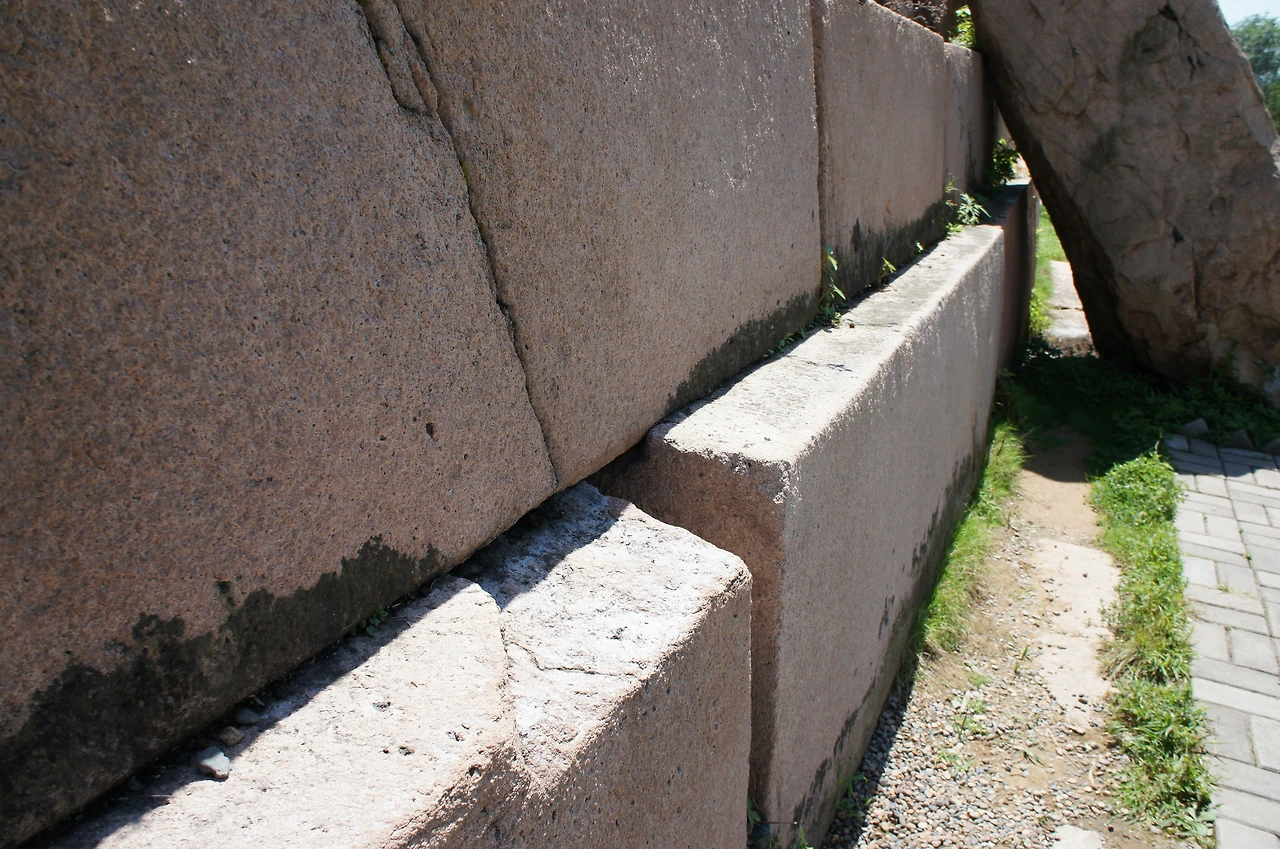 쌓인 돌들이 무너지지 않게 홈을 파서 지지해놓은 바닥돌(호석)과 또 사람 키 높이보다 훨씬 큰 돌을 비스듬히 눕혀놓은 큰 돌(배총)을 보면 그 당시의 기술로 얼마나 힘들고 엄청난 공사였는지 짐작할 수 있다.