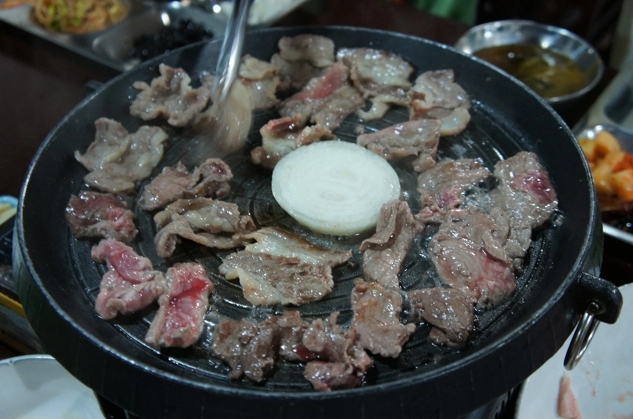다시 차를 타고 한참을 이동하다가 어둠이 완전히 내리기 전, 저녁 식사를 위해 한식당에 들렀다. 오늘 저녁 메뉴는 삼겹살이다.