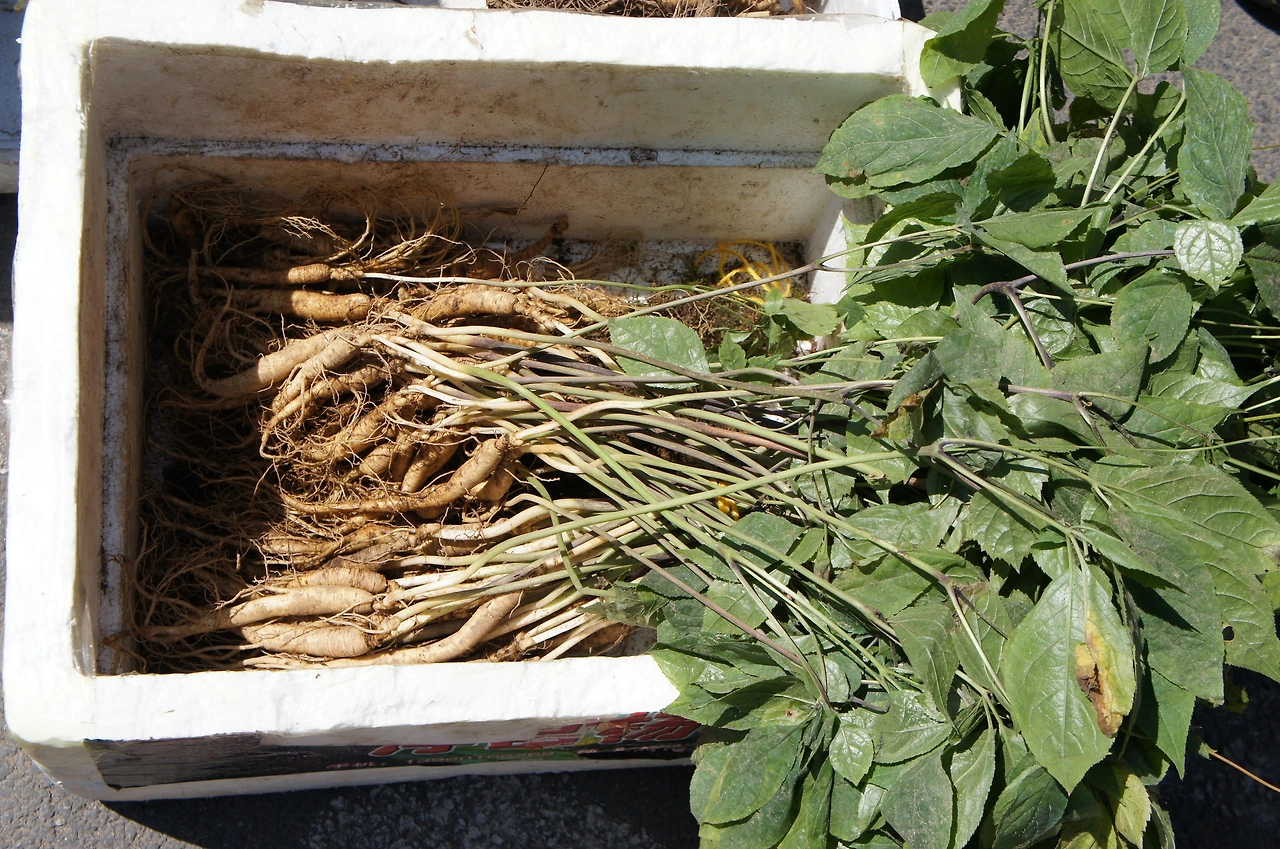 식당 앞에서는 할머니가 좌판을 벌이고 앉아서 자연삼이라며 호객행위를 한다. 잘은 모르겠지만 흙이 마르지 않은 것을 보면 아침 일찍 밭에서 캐온 것 같았다.