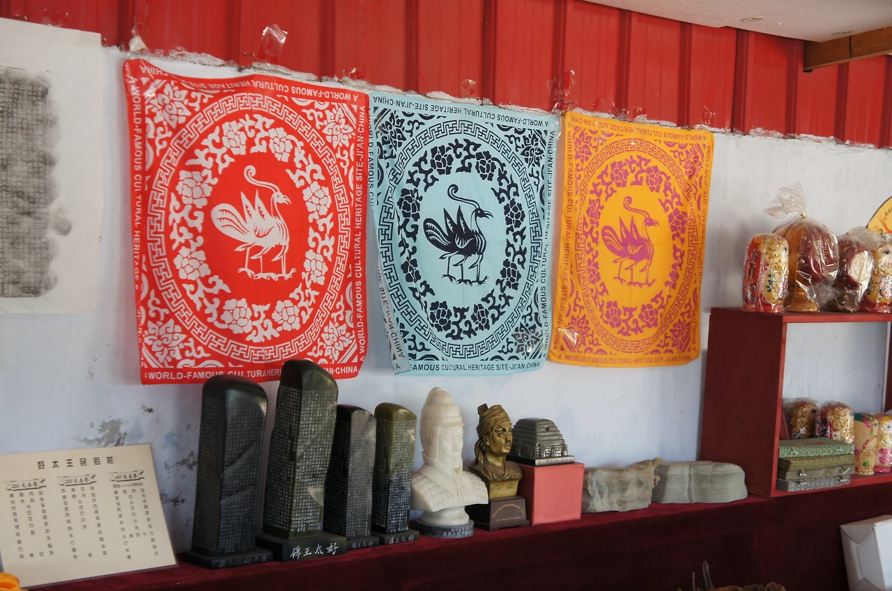 관광을 마치고 돌아오는 길에는 작은 기념품 가게가 있는데 TV 드라마 주몽에서 자주 보았던 고구려의 상징 삼족오 문양의 손수건들이 우리의 눈길을 끈다.