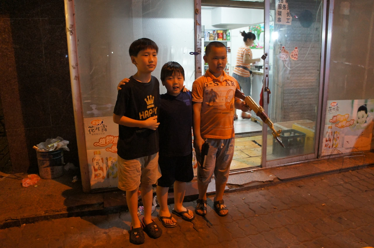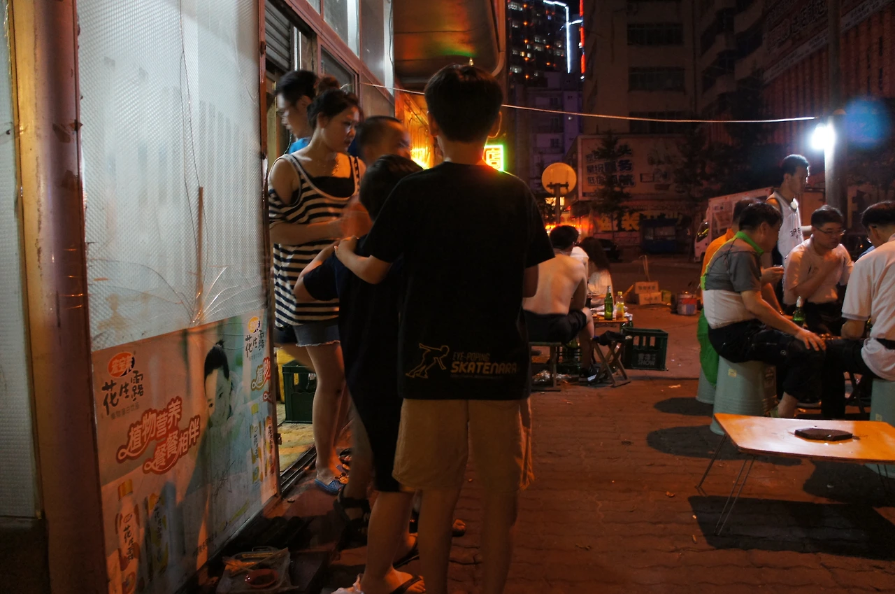 어른들은 조개와 꼬치구이에 한 잔 하는 동안, 아이들은 그 동네 중국 아이들과 어울려서 논다.