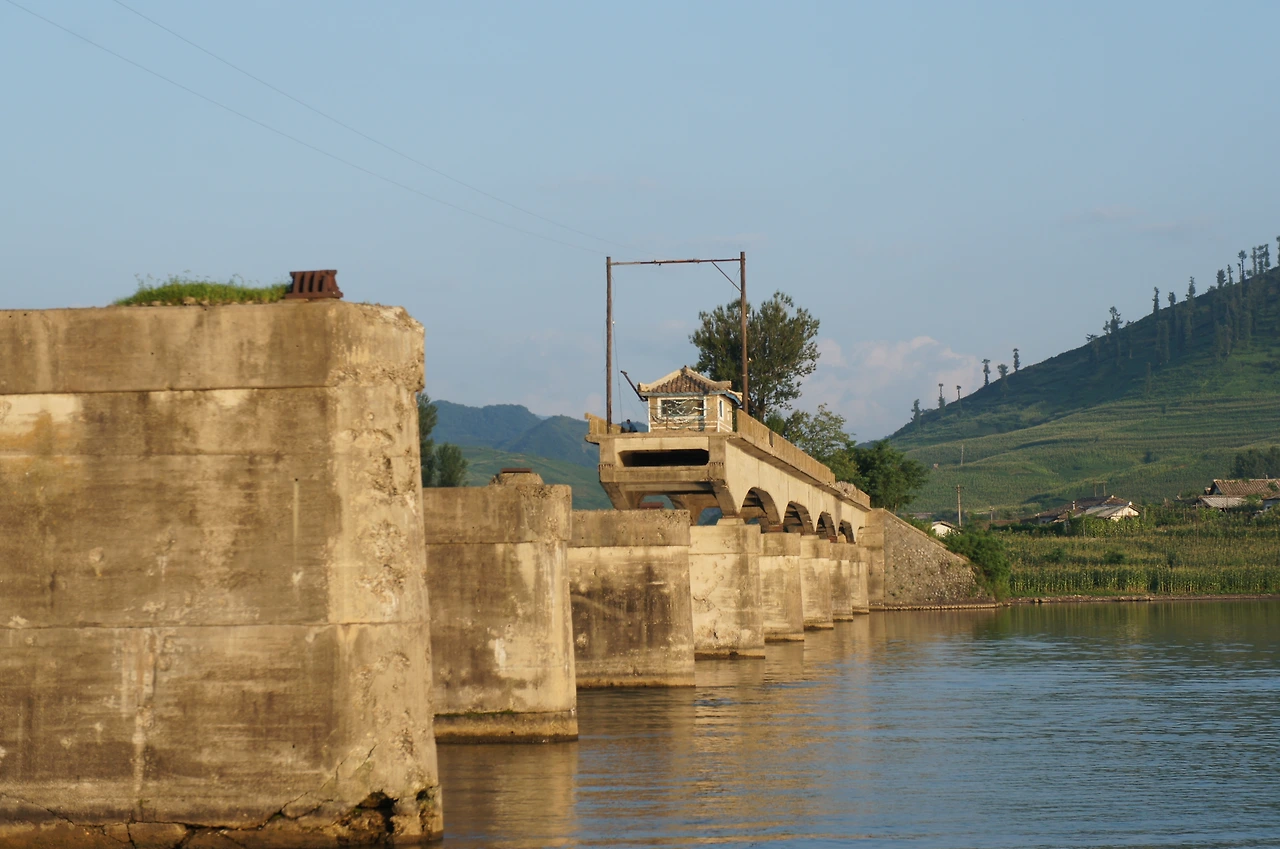 배는 강 상류 쪽으로 방향을 틀어 올라가며 북한 쪽으로 더 가까이 다가가려 한다. 상류로 올라가는 중에 지나게 된 끊어진 다리 하나. 다리 끝에는 탈북자를 감시하기 위한 군 초소가 있다.