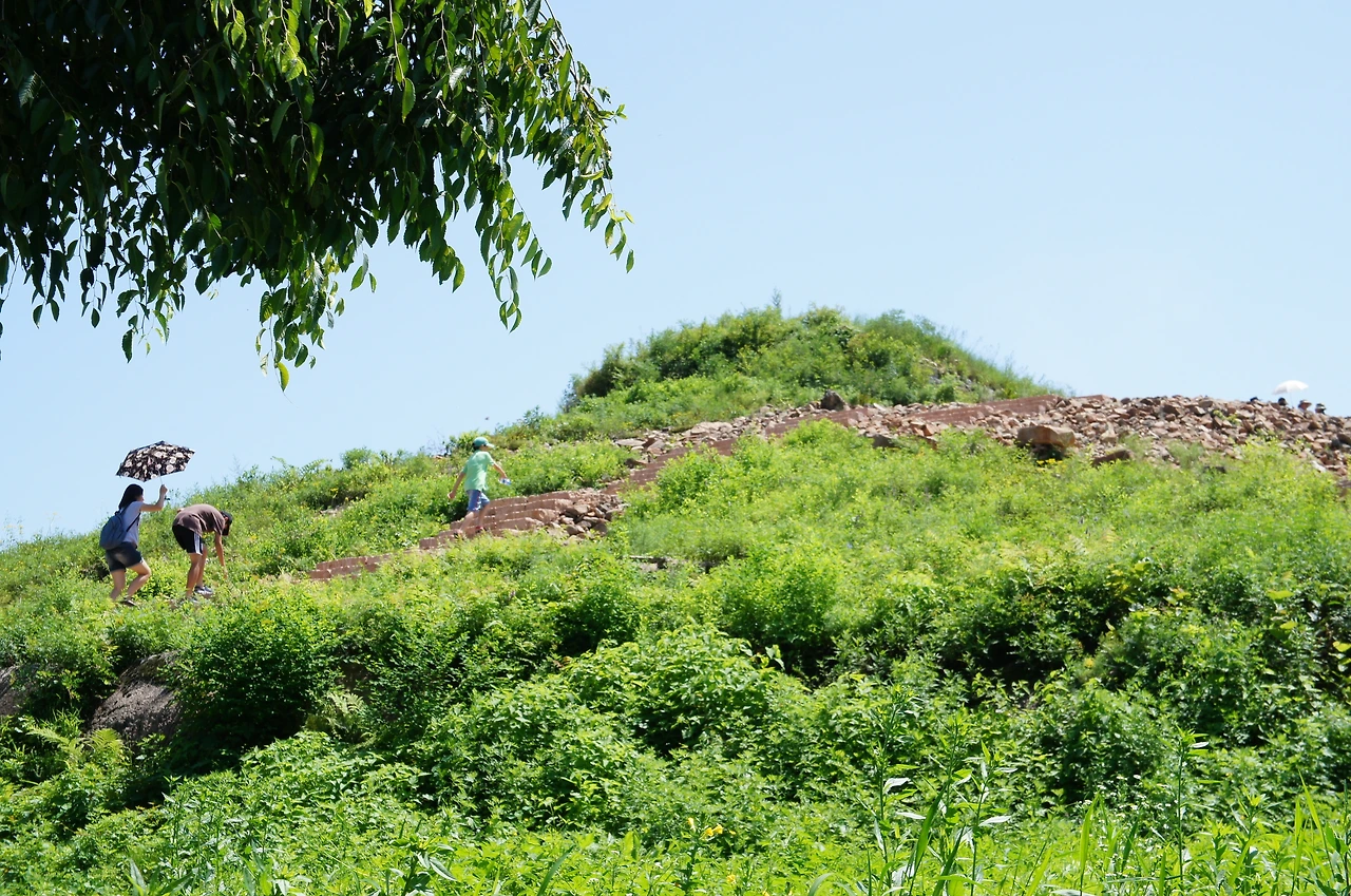 점심식사를 마치고 규모가 작은 고구려 적석총들이 모여있는 곳으로 이동한다. 저 들판에 불룩 불룩 솟아있는 것들이 모두 고구려 시대 때 만들어진 돌무덤이라고 한다.