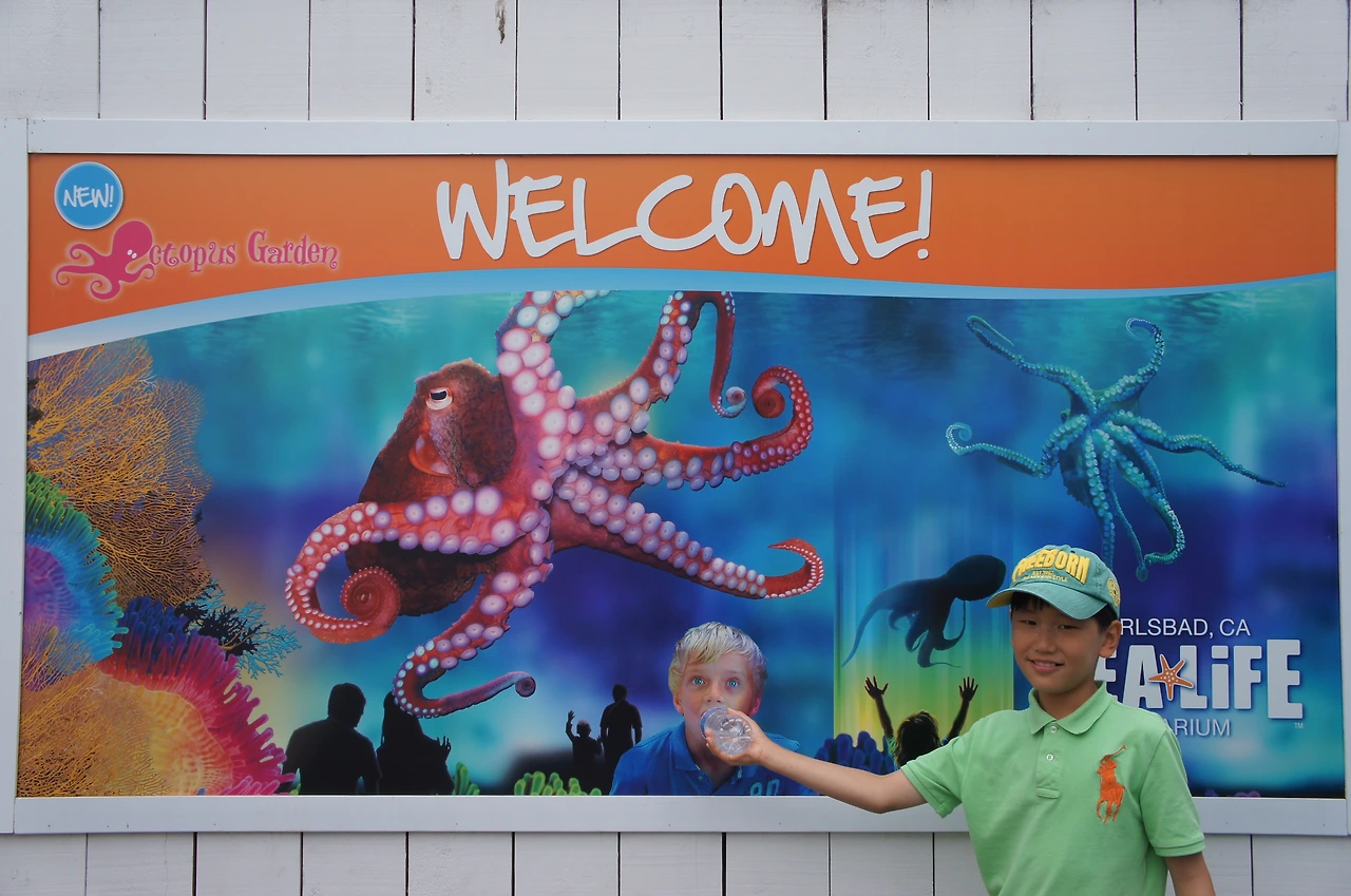 먼저 입구 근처에 있는 수족관에 들른다. 오늘 컨디션이 좋은지 장난기 넘치는 둘째가 물병으로 장난을 친다.