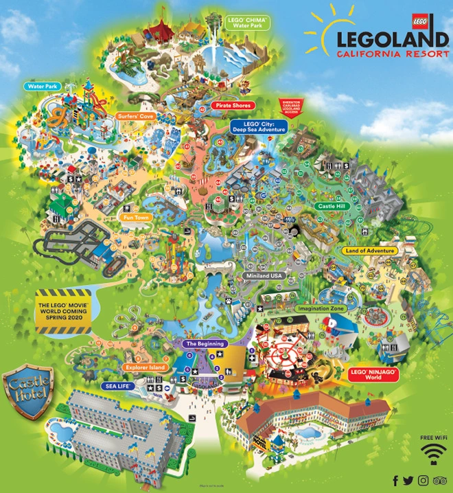 디즈니랜드에 이어 이번에는 레고랜드(LEGO LAND)로 간다. 레고랜드는 세계적인 완구 제조회사인 덴마크 레고(LEGO)사에서 운영하는 테마파크로 전 세계 세 곳(덴마크, 영국, 미국)에서 운영되고 있으며 캘리포니아 레고랜드의 구성은 아래 지도처럼 되어있다.