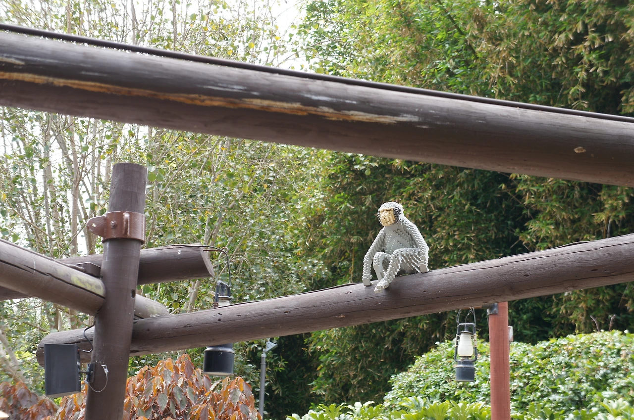 수족관 관람을 마치고 이제 동물원 쪽으로 이동한다. 멀리서 보니 동물원 입구 나무 위에 원숭이가 앉아있는데 가까이 다가가서 보니 레고로 만든 원숭이다. 감쪽같이 속을 정도로 정교하다. (ㅎㅎ)