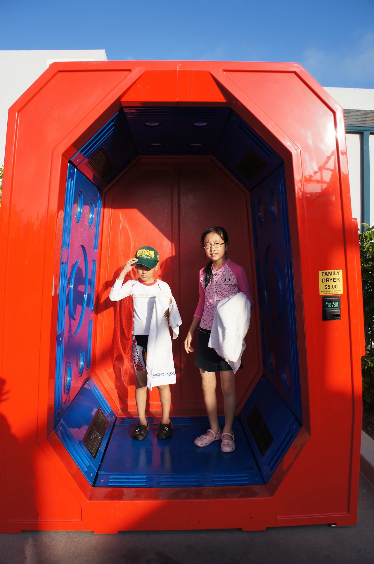 신나게 물놀이를 한 후에 젖은 몸을 잘 말리고 새 옷으로 갈아입는다. 참고로 레고랜드에서는 수영복과 여벌의 옷은 필수다.