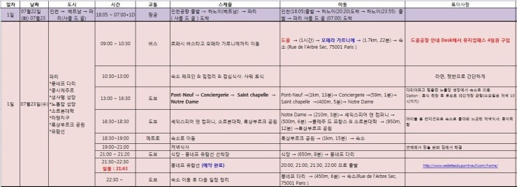 오후 일정은 퐁네프다리 - 콩시에리주리 - 생샤펠 - 노트르담 성당가까지 갔다가 숙소로 돌아와서 저녁을 먹고 퐁네프 유람선을 타고 파리 야경을 보는 일정이다. 구글 신께 여쭤보면 정확한 거리와 시간을 알려주신다. ㅎ