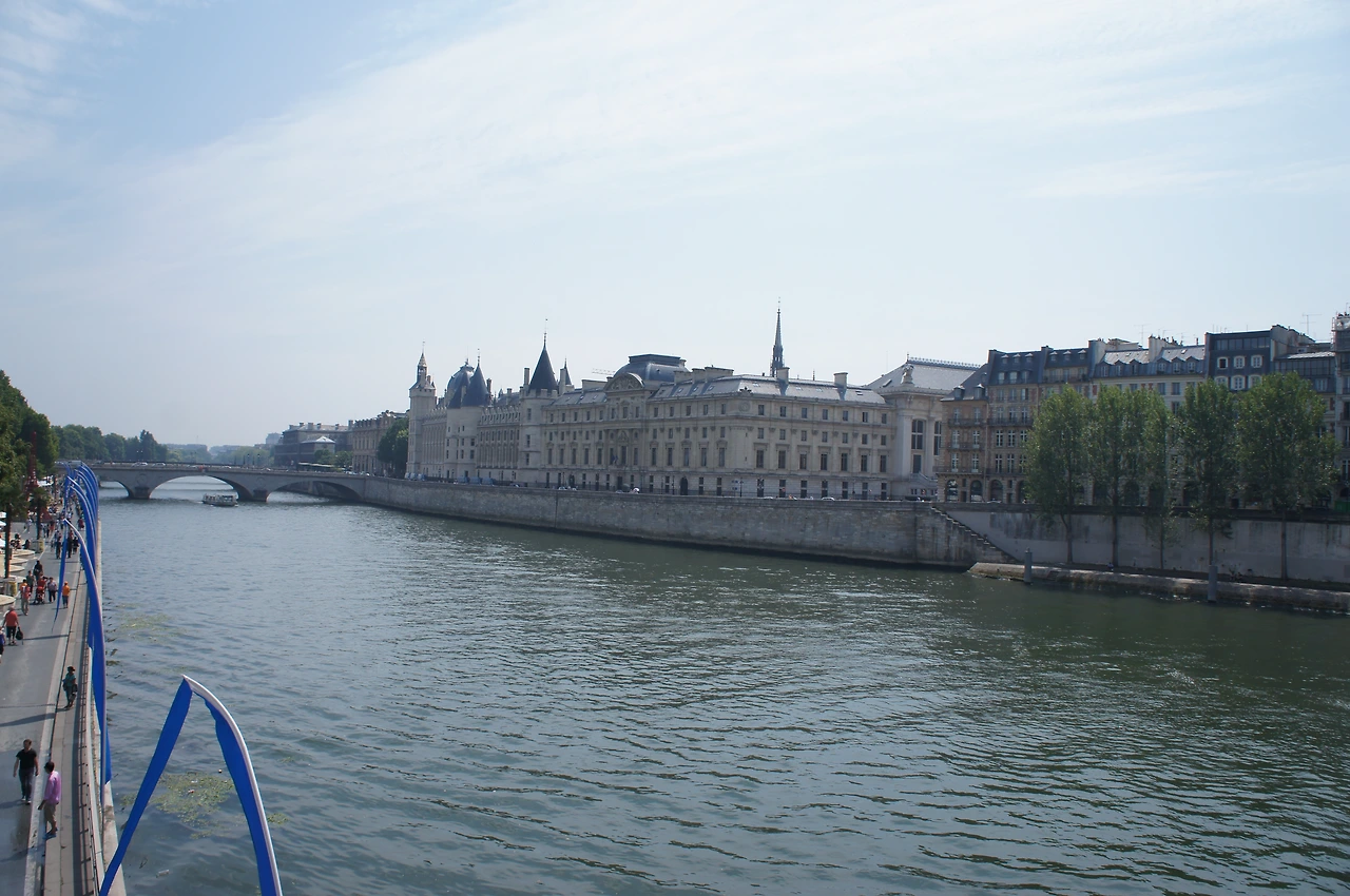 숙소 바로 근처에 퐁네프 다리가 있다. 다리 위에서 둘러보니 정말 멋스러운 건물들이 센 강을 따라 줄지어 있다. 저 기 강 건너편 길게 있는 건물이 우리의 첫번째 목적지 콩시에르주리다.