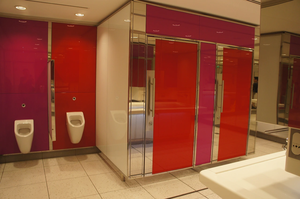 화장실 디자인도 남다른 빨간색. 이런 화장실은 처음이다.