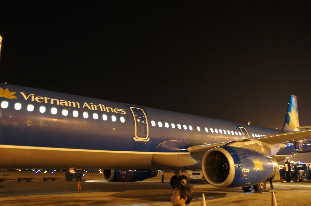 하노이 공항에 착륙했는데 활주로에서 내려 버스를 타고 공항으로 이동한다. 이동 중에 비행기 사진을 찍어 본다. 날이 덥고 무척 습하다.