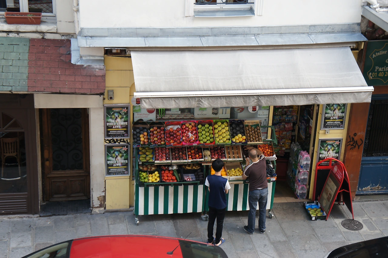 벌써 점심시간이 되어 점심을 챙겨 먹고 1시간 정도 낮잠을 자고 났더니 다시 기운이 났는지 아니면 엄마의 노여움을 사는 것이 무서웠는지 루브르로 다시 가자고 한다. 숙소 바로 아래에 작은 식료품 가게가 있었는데 둘째에게 과일을 사 오라고 심부름을 시켜본다. ㅎ