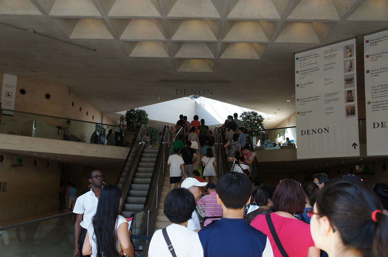 사실 루브르에 도착하자마자 모나리자를 향해 돌진했었는데 막상 가서 보니 작품의 크기도 너무 작고, 방탄유리 같은 것에 가려 있었으며, 그 앞에는 너무도 많은 사람들이 한꺼번에 몰려들어 아수라장이 되어 있었다. 소매치기가 특히 많다고 하여 짐에도 신경 쓰랴, 다른 사람들이 나오지 않고 모나리자와 단 둘이 사진을 찍기 위해서 많은 노력을 기울여야 하는 곳이다. 기대가 크면 실망도 크다고 했던가... 그래도 이렇게 직접 볼 수 있어 다행이라고 위안을 삼아 본다.