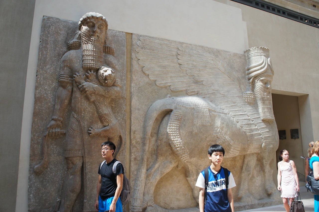 다시 돌아온 루브르, 앗시리아관 앞에서 찰칵. 좀 쉬고 와서 그런지 둘째의 표정이 좀 밝아졌다.