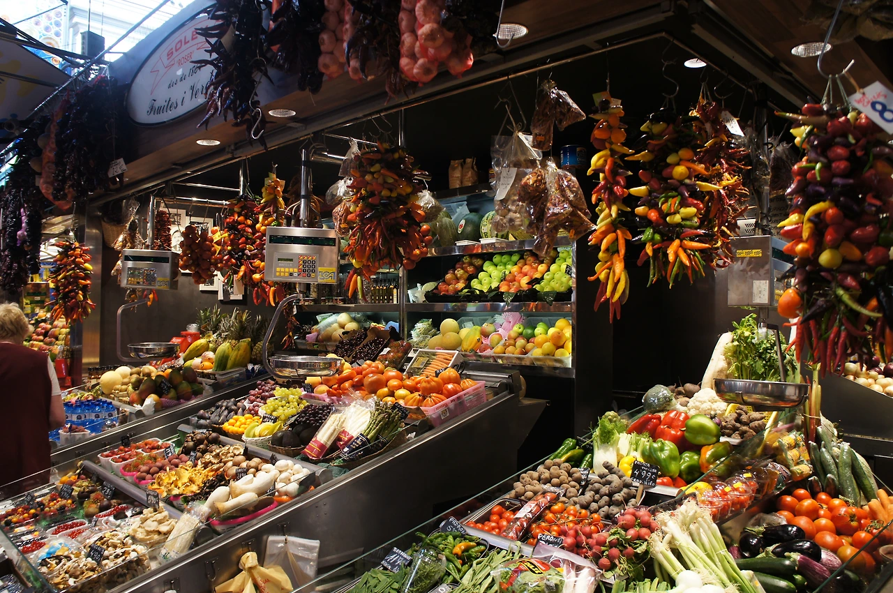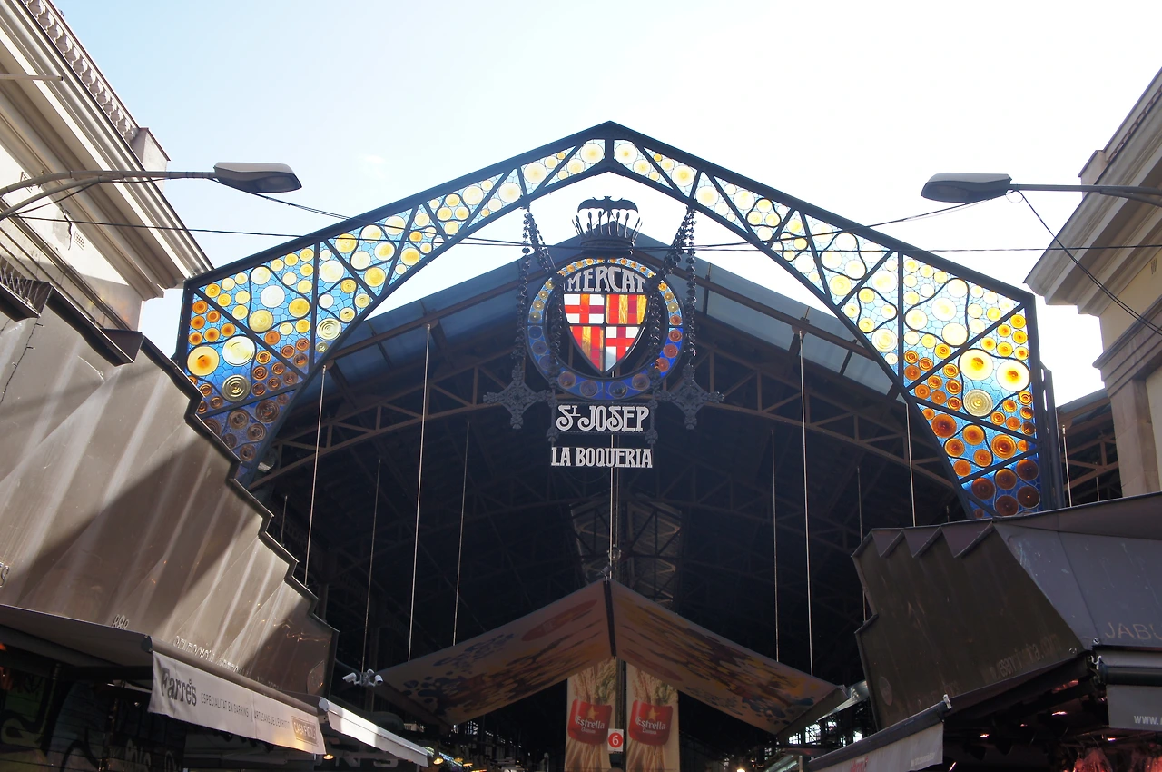 보케리아 시장 입구가 나온다.