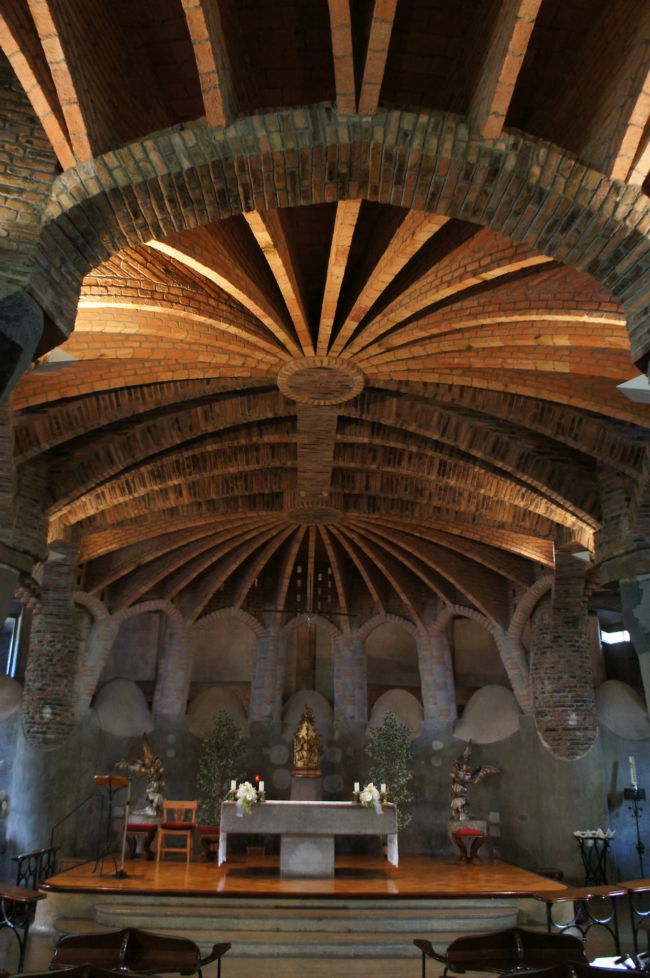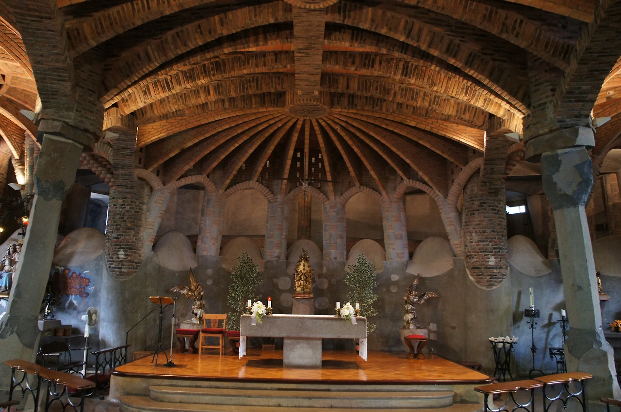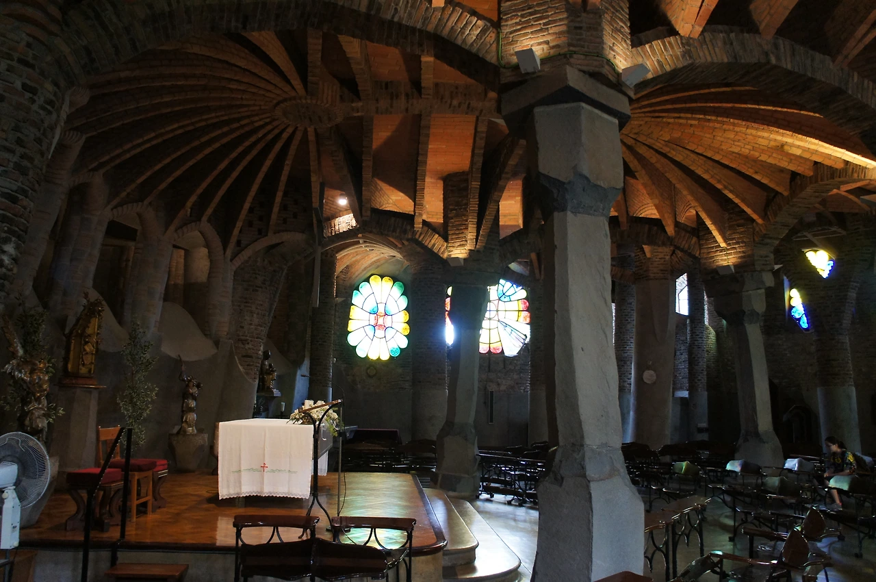 관광객들에게 많이 알려진 곳이 아니라 그런지 우리 가족만 있는 행운을 누려본다. 성당 내부로 들어가 보는데 정말 가우디 특유의 곡선미를 느낄 수 있다.
