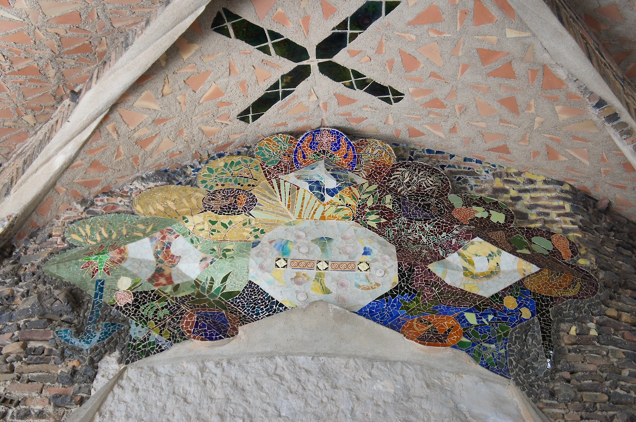 건물 바깥으로 나와 주변을 둘러보면 구엘 저택의 외관을 특별하게 만들어 주었던 타일이 독특한 문양으로 표현되어 있다.