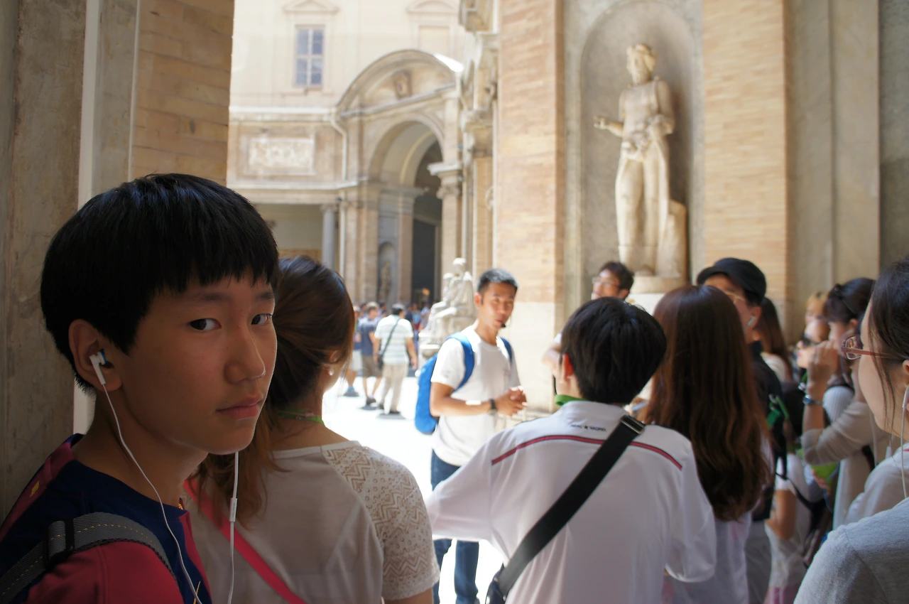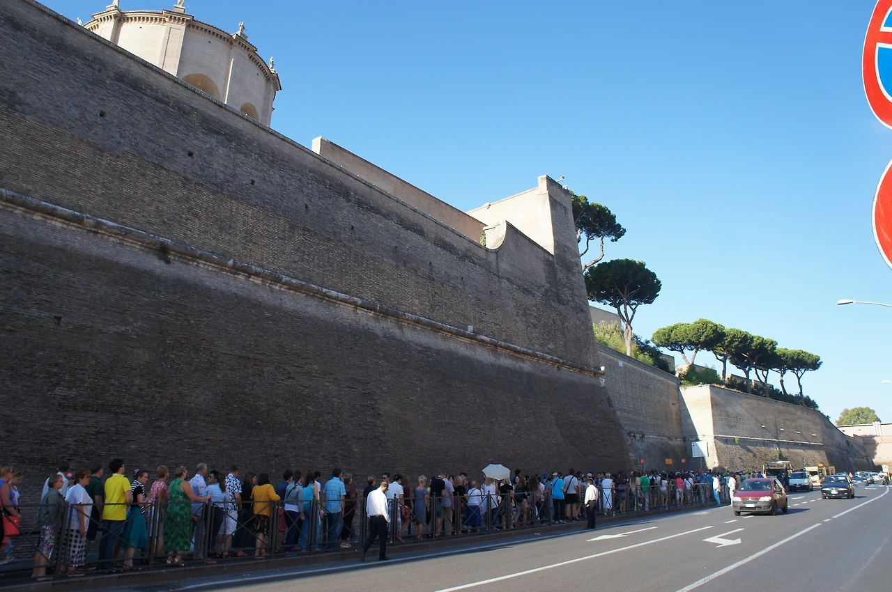 순서를 기다리는 동안, 가이드가 들려주는 바티칸 이야기를 듣는다.