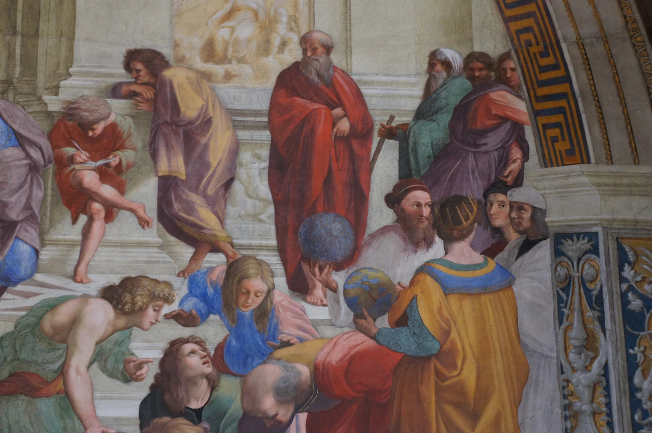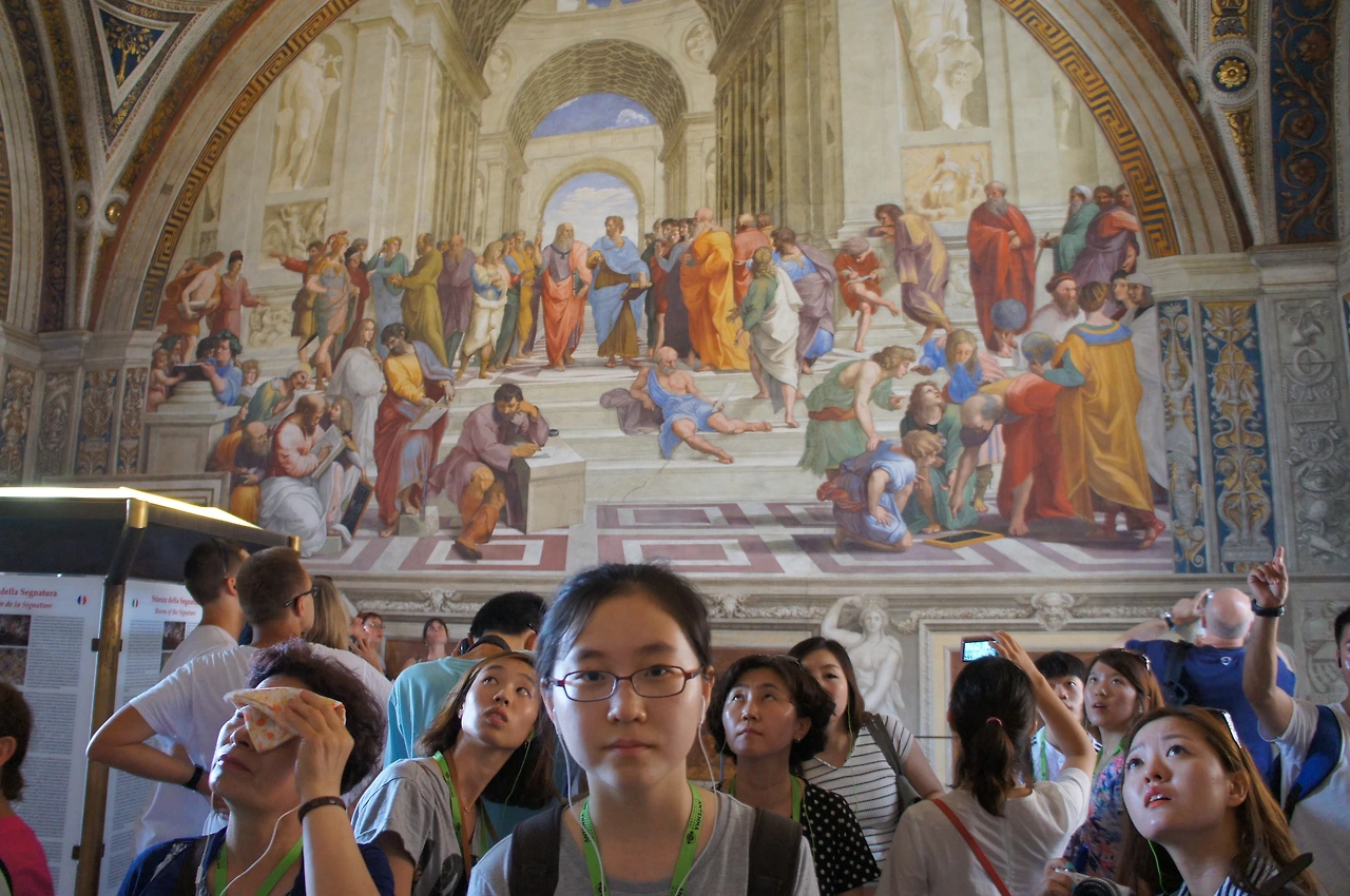"아테네 학파"앞에는 너무 많은 사람들이 몰려있어 온전한 사진을 담기 힘들다.