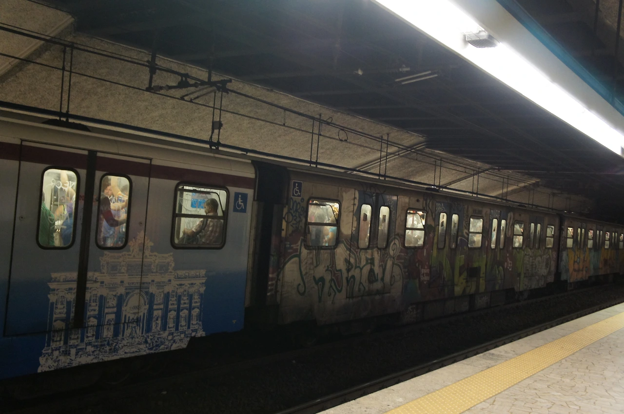 처음 타보는 로마 지하철, 페인팅으로 가득한 지하철이 참 특이하다.