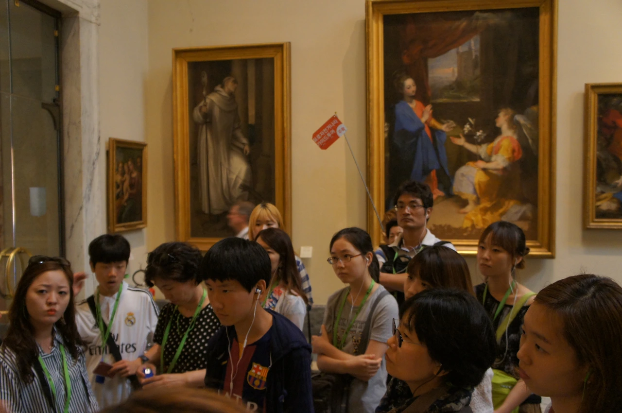 수신기와 이어폰을 건네받고 가이드의 뒤를 쫓아 정신없이 따라간다.