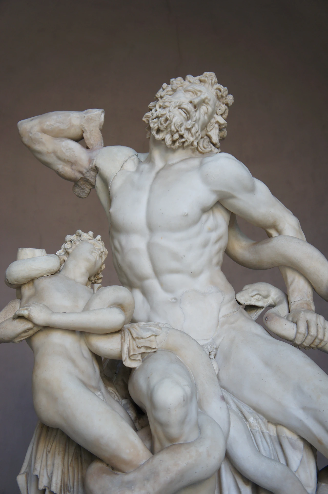 트로이의 사제인 라오콘을 주제로 한 작품으로, 1506년 에스퀼리노 언덕에서 발견되었다고 하며, 율리우스 2세가 구매하여 바티칸에 배치하였다고 한다.