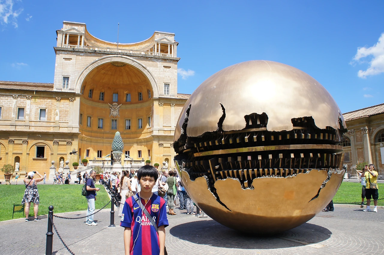 바르셀로나에서 샀던 FC바르셀로나 유니폼을 챙겨 입은 아드님. 바티칸 오픈이 9시라 아무리 빨리 와도 기다려야 한다.