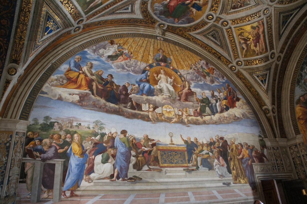 드디어 도착한 서명의 방이다. 너무나도 유명한 라파엘로의 명작 "성사 토론" "아테네 학파"가 그려진 곳이다.