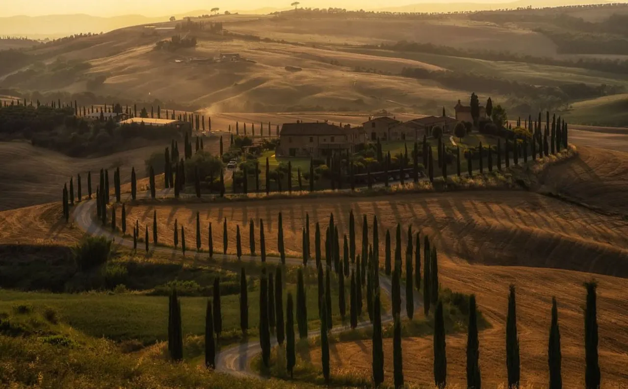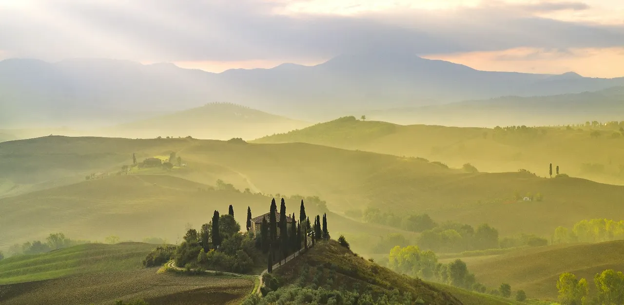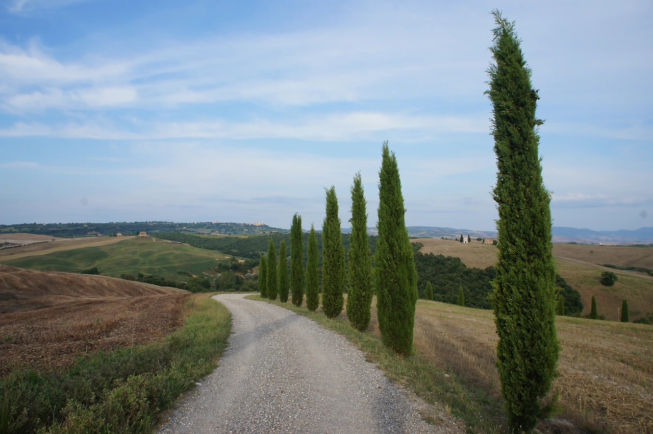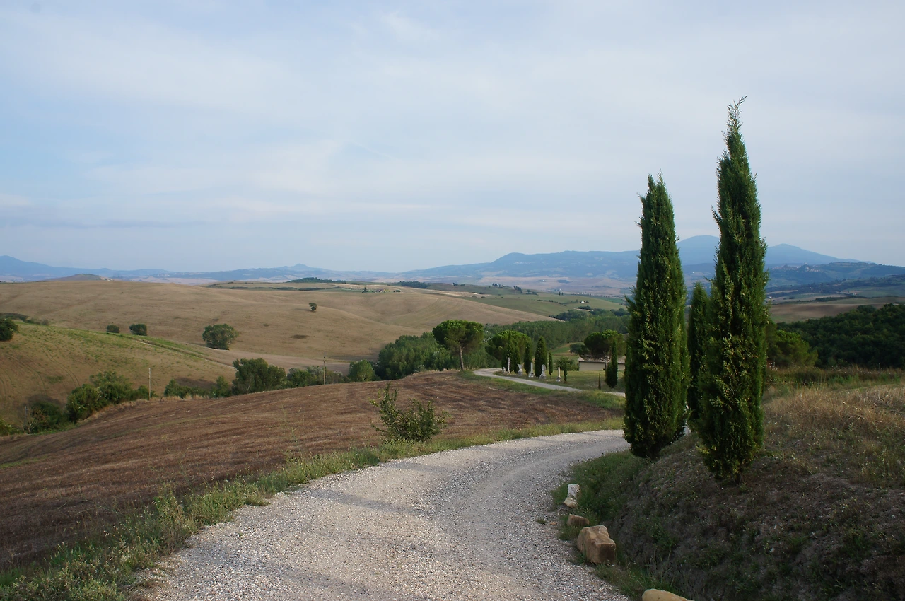 둥글 둥글 조그만 언덕들이 마치 잔잔한 물결이 출렁이듯 펼쳐져 있고, 그 사이로 놓인 한적한 시골 도로를 따라 하늘을 향해 춤추듯 자라고 있는 멋진 사이프러스 나무들이 있는 곳. 아마 한번쯤은 와~ 하고 감탄사를 내면서 봤을법한 사진 속 풍경이 바로 이태리 토스카나 지역 발 도르차 평원의 모습이다.