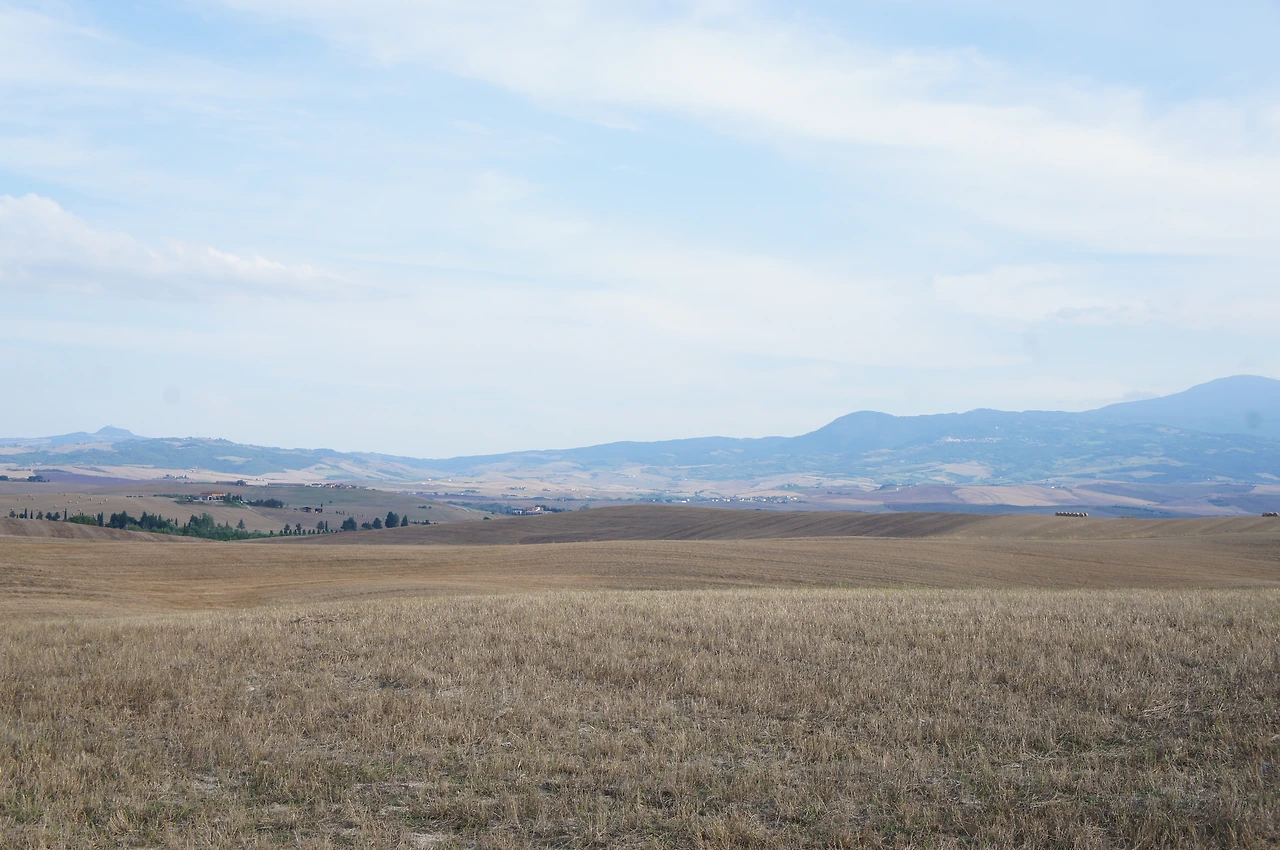 여행 계획 당시, S자로 난 시골 도로를 따라 멋지게 늘어서 있는 사이프러스 나무길을 달려보고 싶었지만 막상 도착해서 보니 사진에서 봤던 그 풍경은 어디에서 찍은 것인지 찾을 수가 없었고, 초록색이어야 할 밀밭은 수확이 끝나있었다.