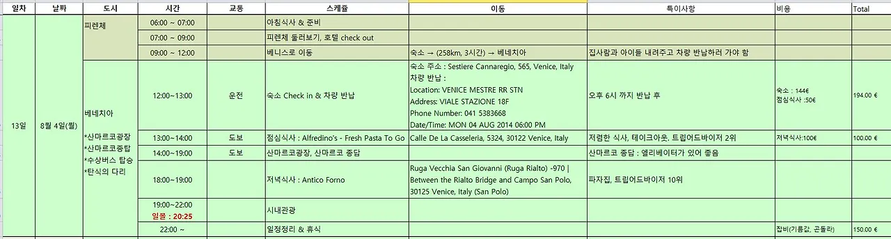 렌터카는 차량 반납 장소에 따라 렌트 요금이 달라지는데, 렌트비를 아끼기 위해 베네치아 섬에서 조금 떨어진 베네치아 메스트레 역에 있는 렌터카 사무실에 차를 반납하고 기차를 타고 베네치아로 들어가기로 했다.