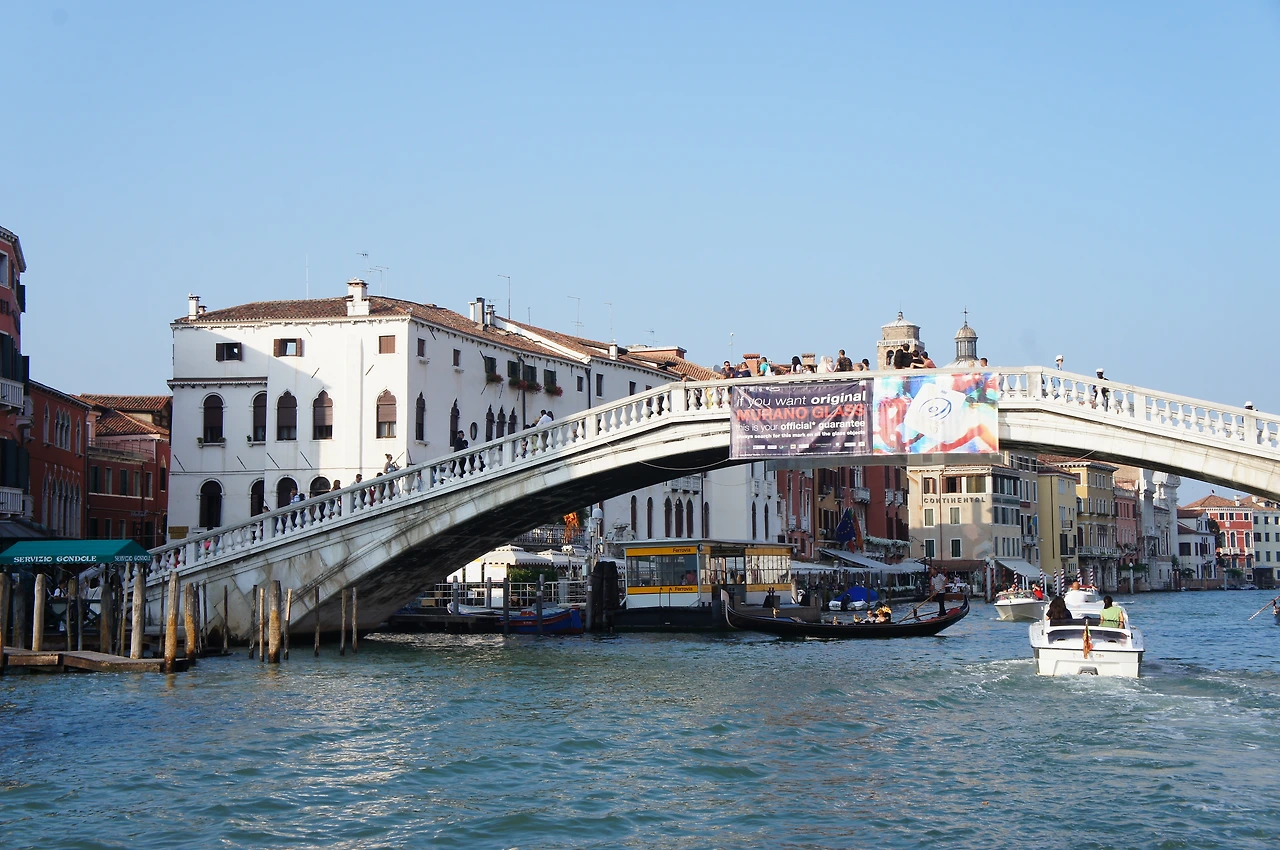 리알토 다리 아래로 지나간다.