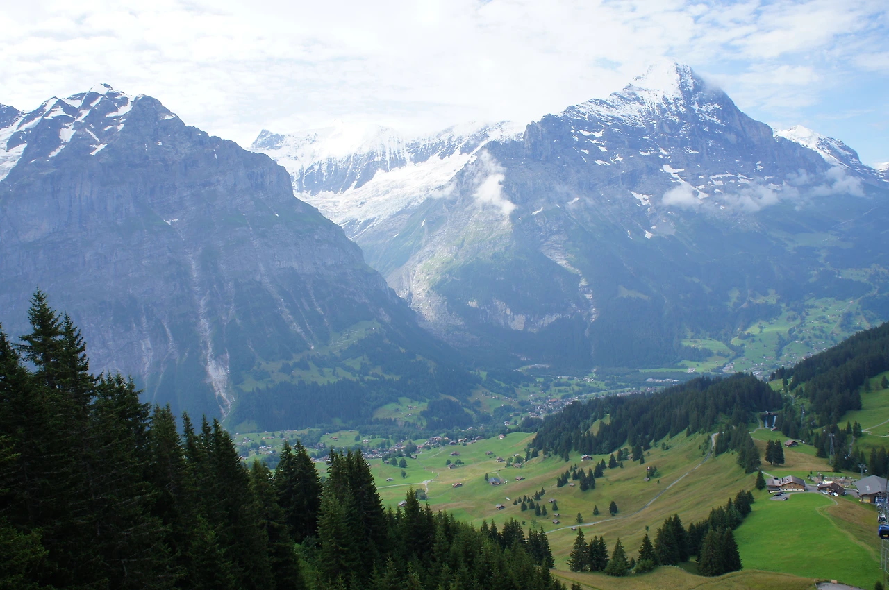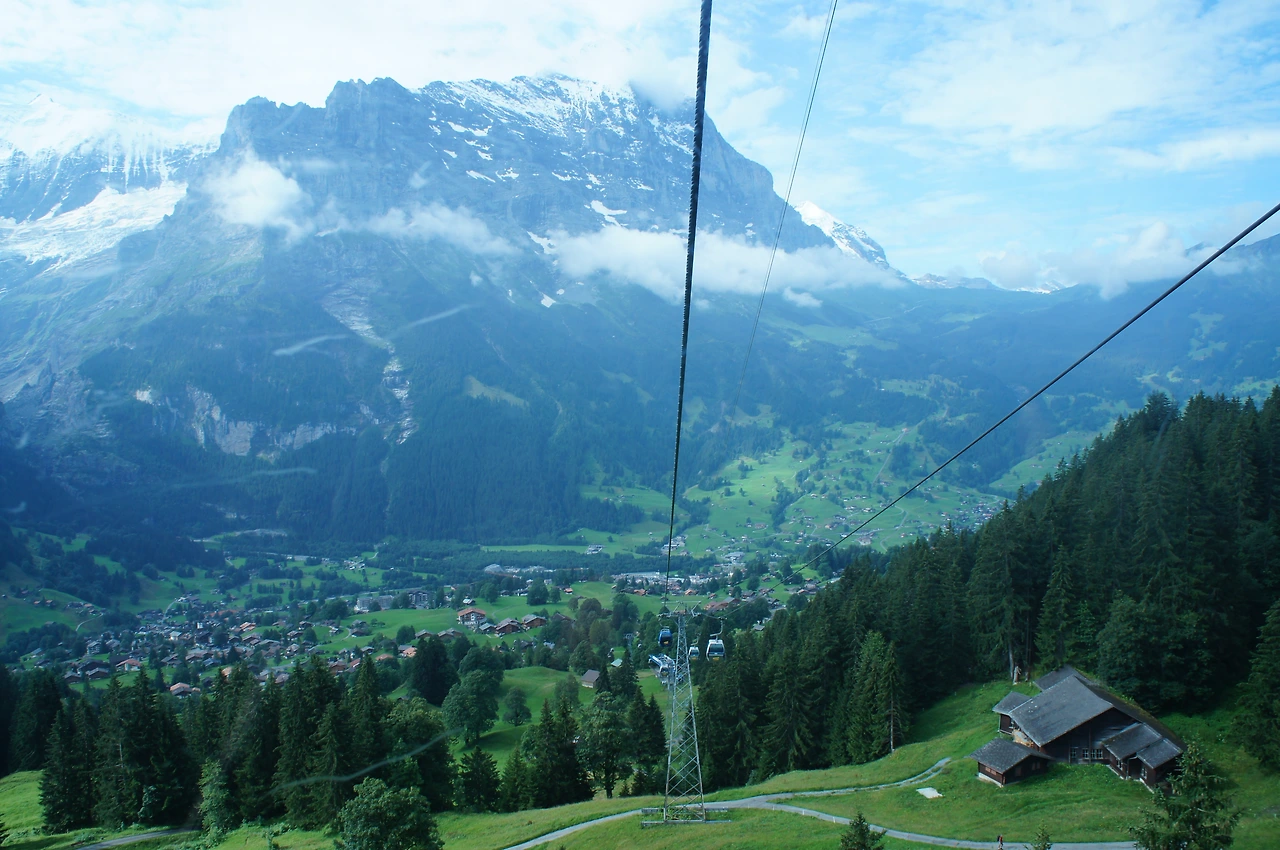 곤돌라를 타고 피르스트로 간다. 만년설에 덮인 깎아지른듯한 험준한 산과, 그 아래 펼쳐진 초록색 풀밭을 보니 이곳이 바로 알프스임을 느끼게 된다.