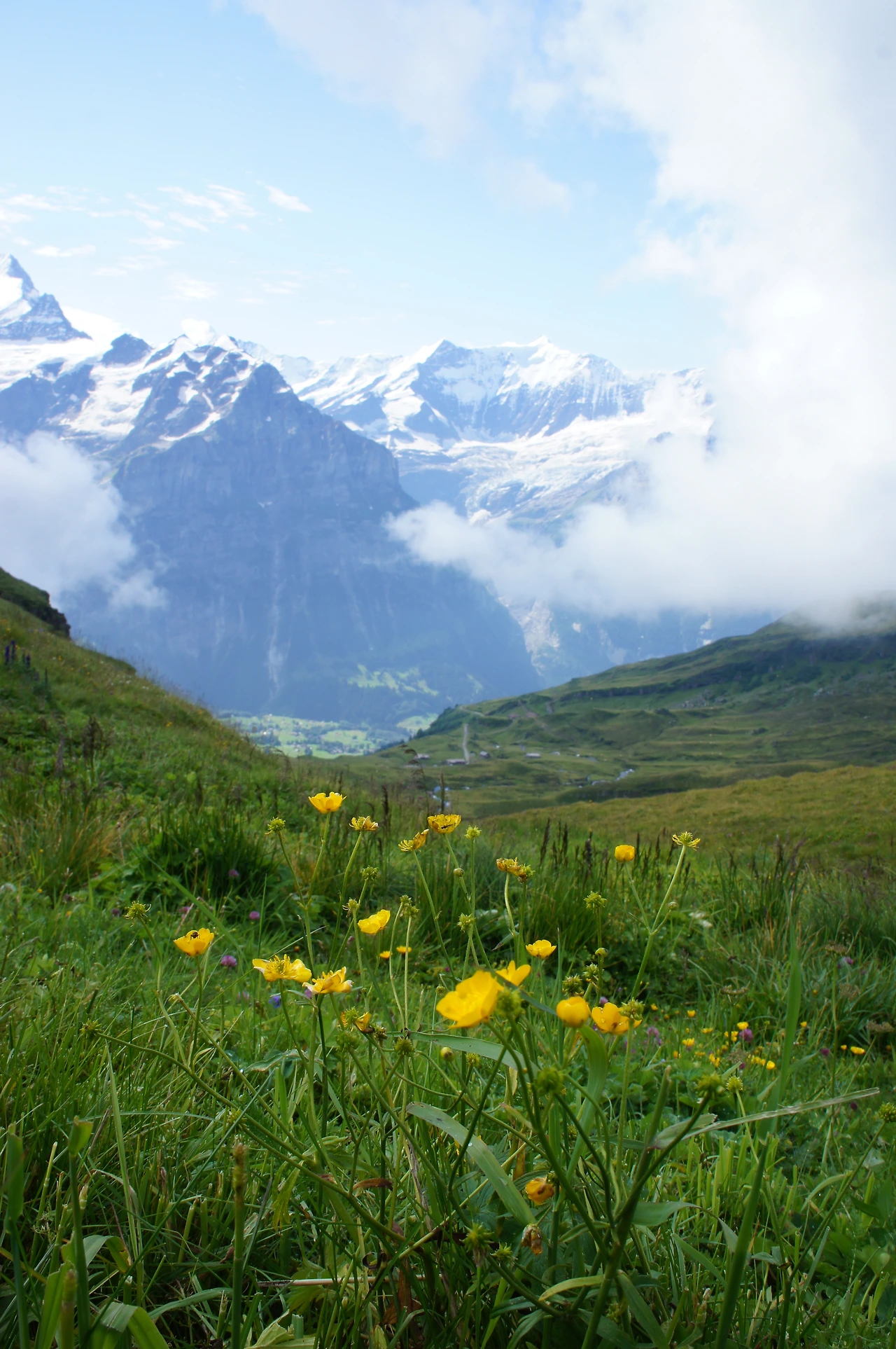 걸으면서 보는 알프스의 산들. 여기서는 산이 주인공이 아니라 들꽃이 주인공 같다.