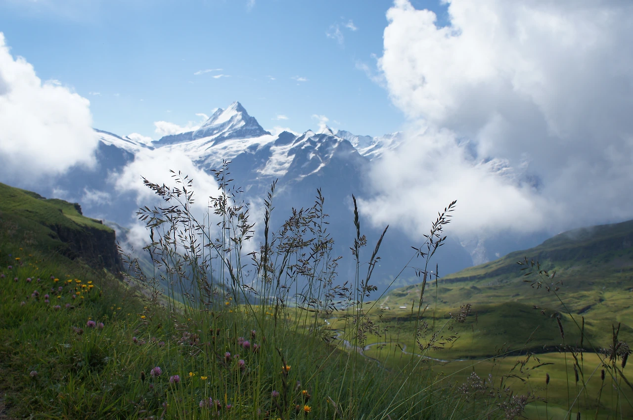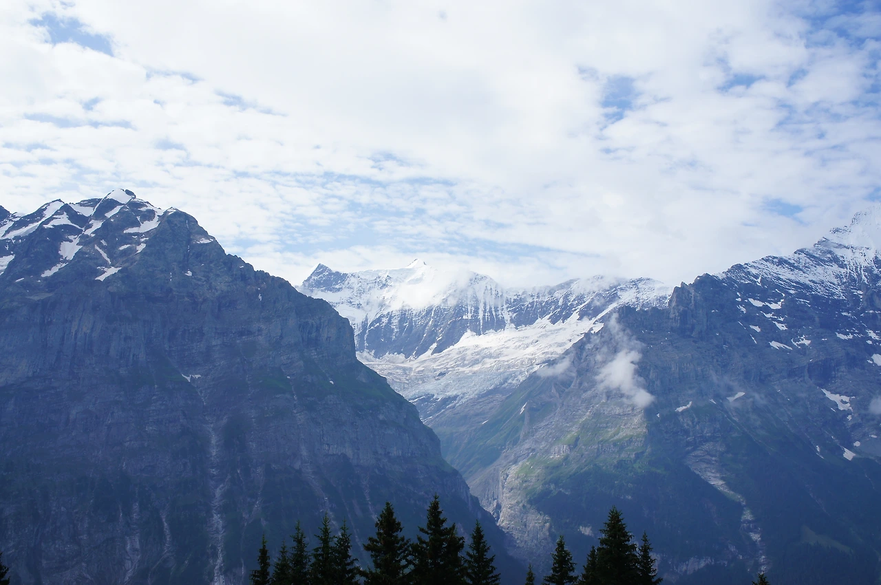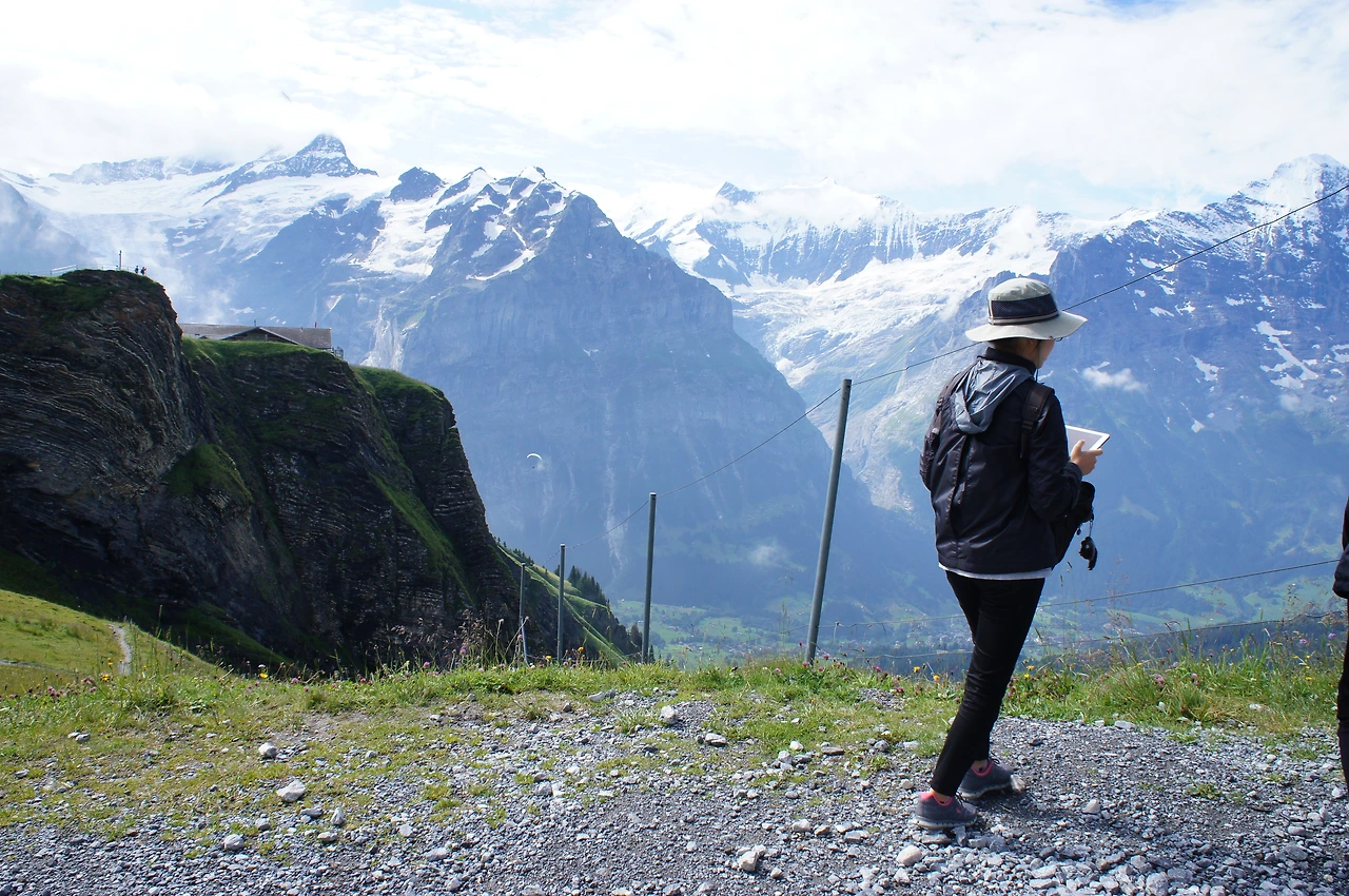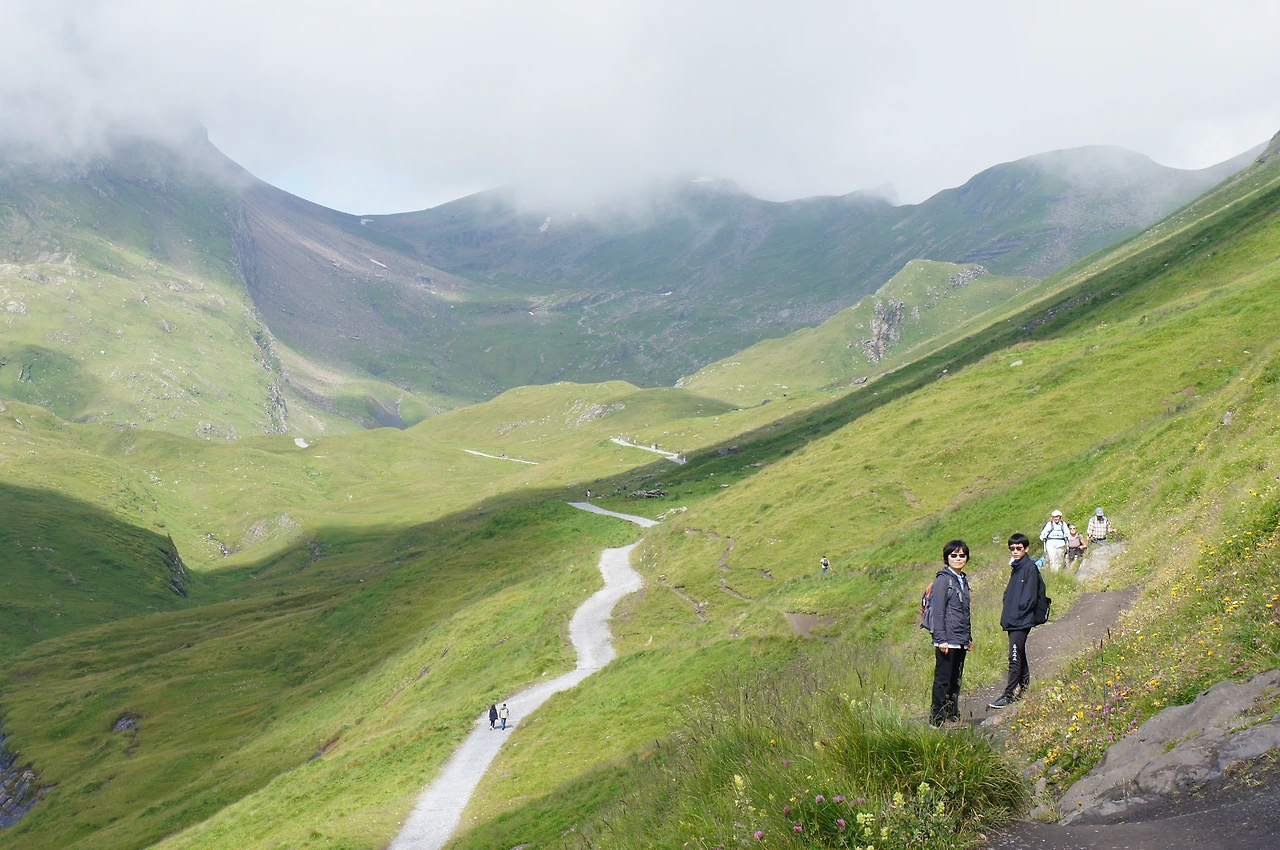 산악열차와 케이블카를 타고 멘리헨 전망대로 이동 후 클라이네 샤이덱까지 걸어가는 코스는 아이거 북벽 (노스페이스)를 볼 수 있어 유명한 코스다.