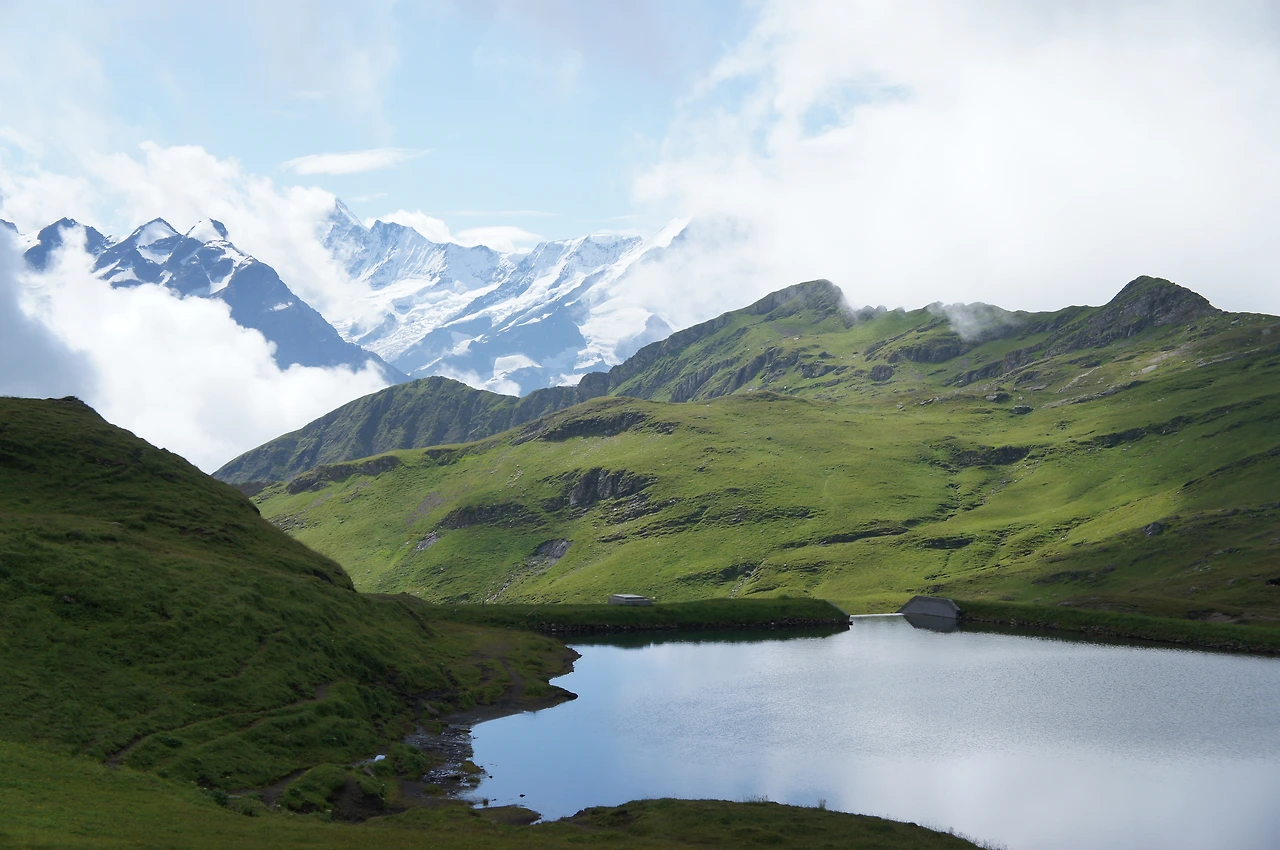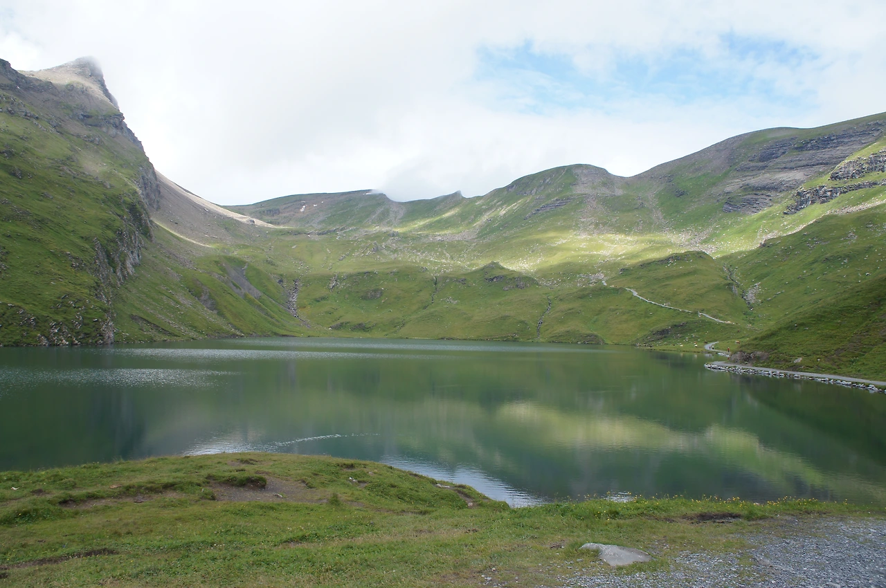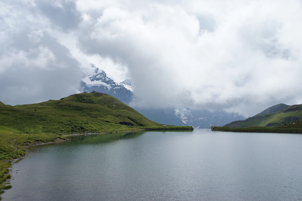 바람이 멈춰 거울같은 호수에 비친 알프스의 모습을 기다려 보지만 아쉽게도 이제 피르스트로 돌아가야 할 시간이다. 다음 편에 계속...