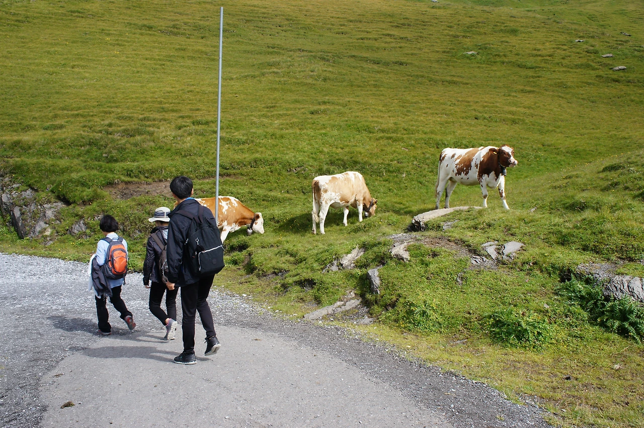 풀밭에는 자유 방목을 해서 키우는 소들이 있는데 누구 하나의 간섭도 받지 않고 평화롭게 풀을 뜯고 있는 모습이 멋지다. 소의 목에 걸린 방울이 너무 크다.