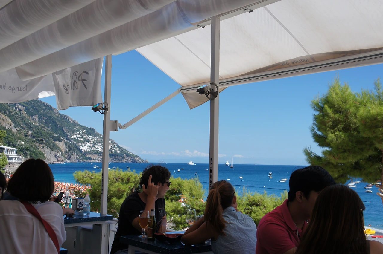 카페에 들러 필자는 시원한 맥주를, 집사람은 에스프레소 커피를, 아이들은 젤라토 아이스크림을 먹으며 보는 포지타노 해변. 정말 멋지다. 한국의 바닷가와는 달리, 바다냄새가 전혀 나지 않는다. 아마 갯벌이나 모래가 없는 자갈 해변이라 그런가 보다.